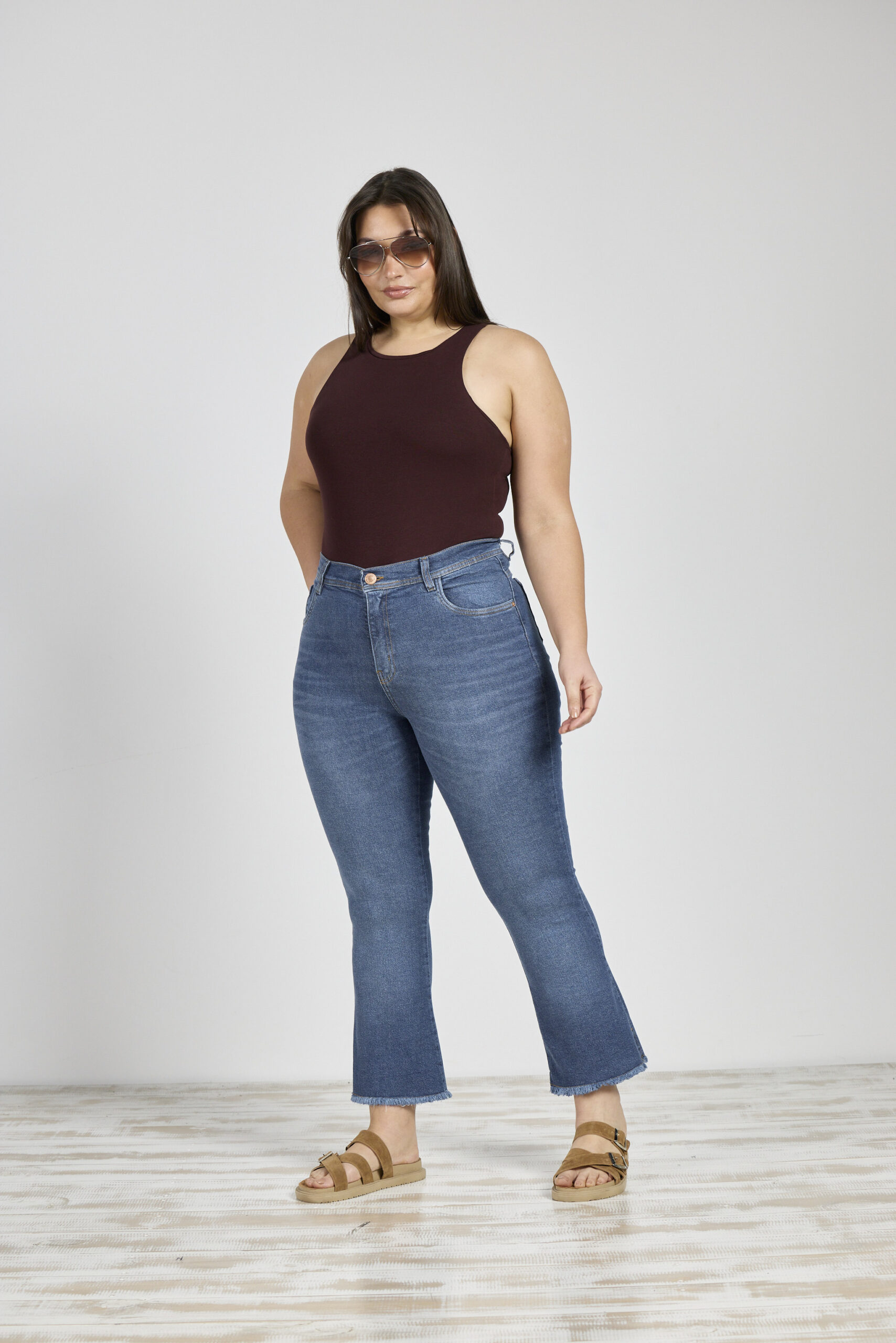 ART. 3011 | CROP SEMI OXFORD STONE CON TAJO EN BOTA ELASTIZADO