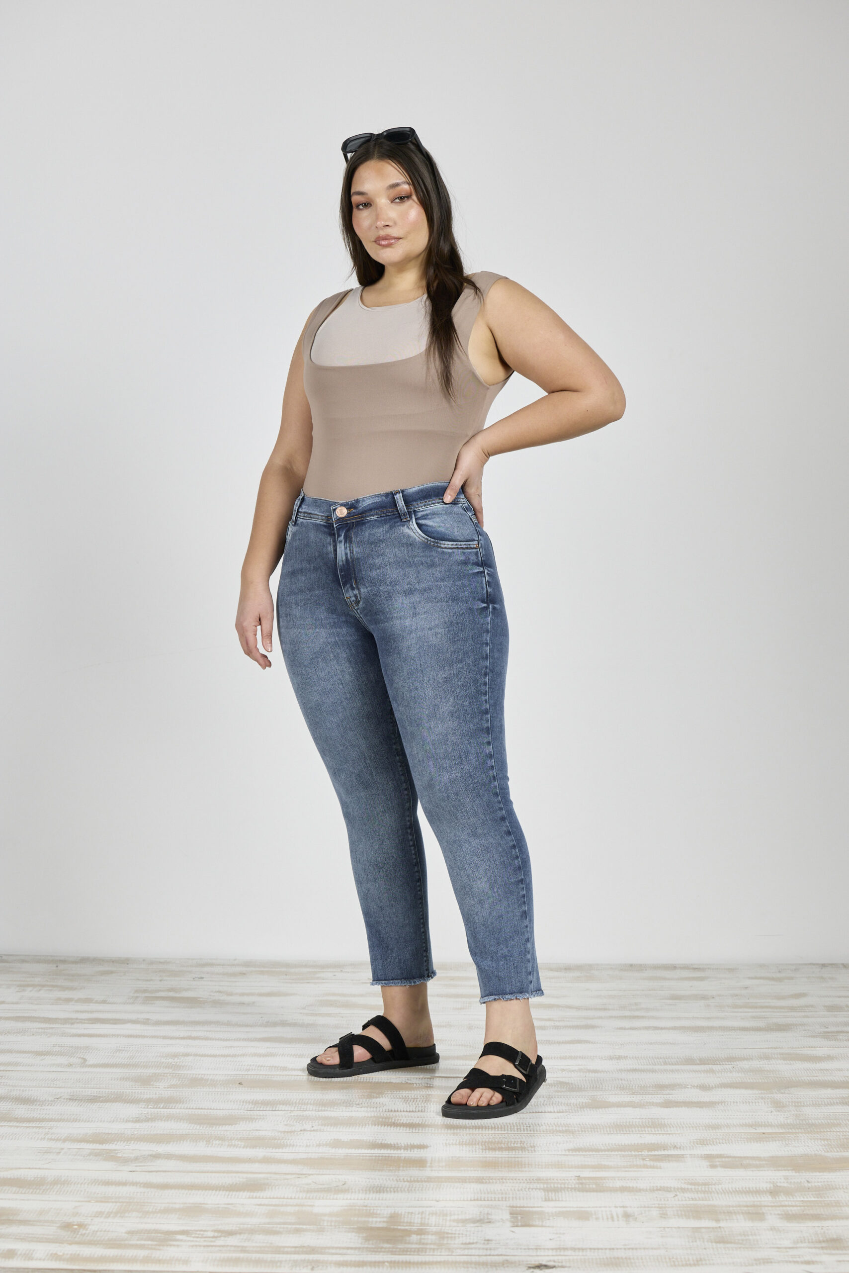 ART. 3011 | CROP SEMI OXFORD STONE CON TAJO EN BOTA ELASTIZADO