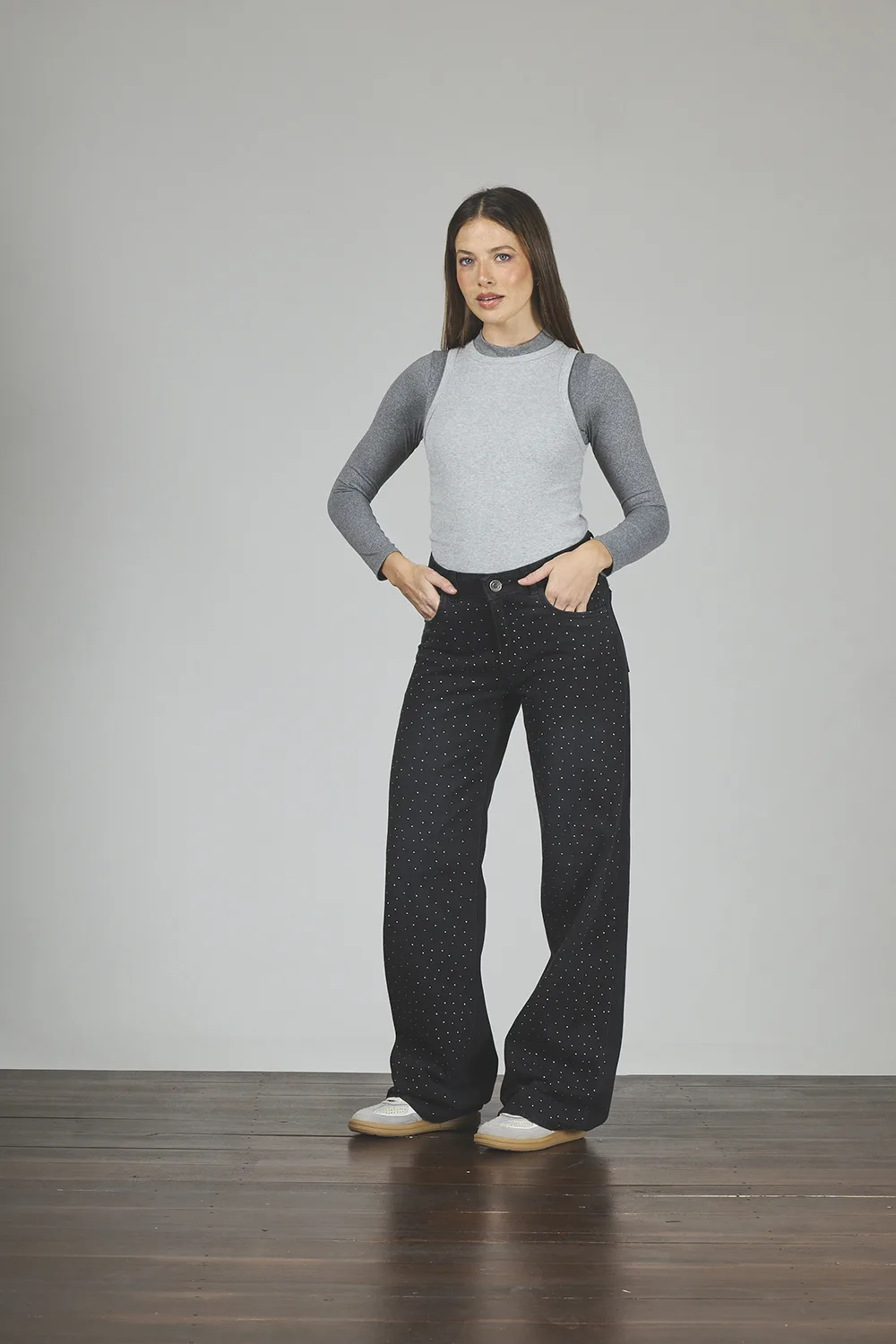 ART. 312 | WIDE LEG NEGRO CON STRASS RÍGIDO