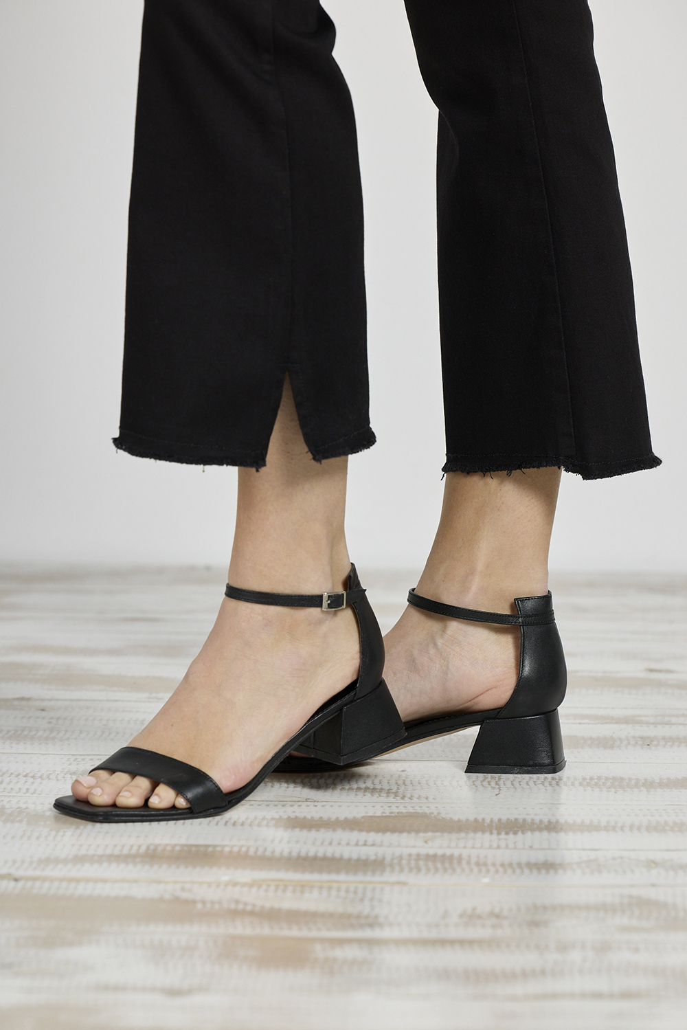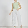 ART. 348 | CROP SEMI OXFORD NEGRO DEFLECADO C/ABERTURA EN BOTA ELASTIZADO