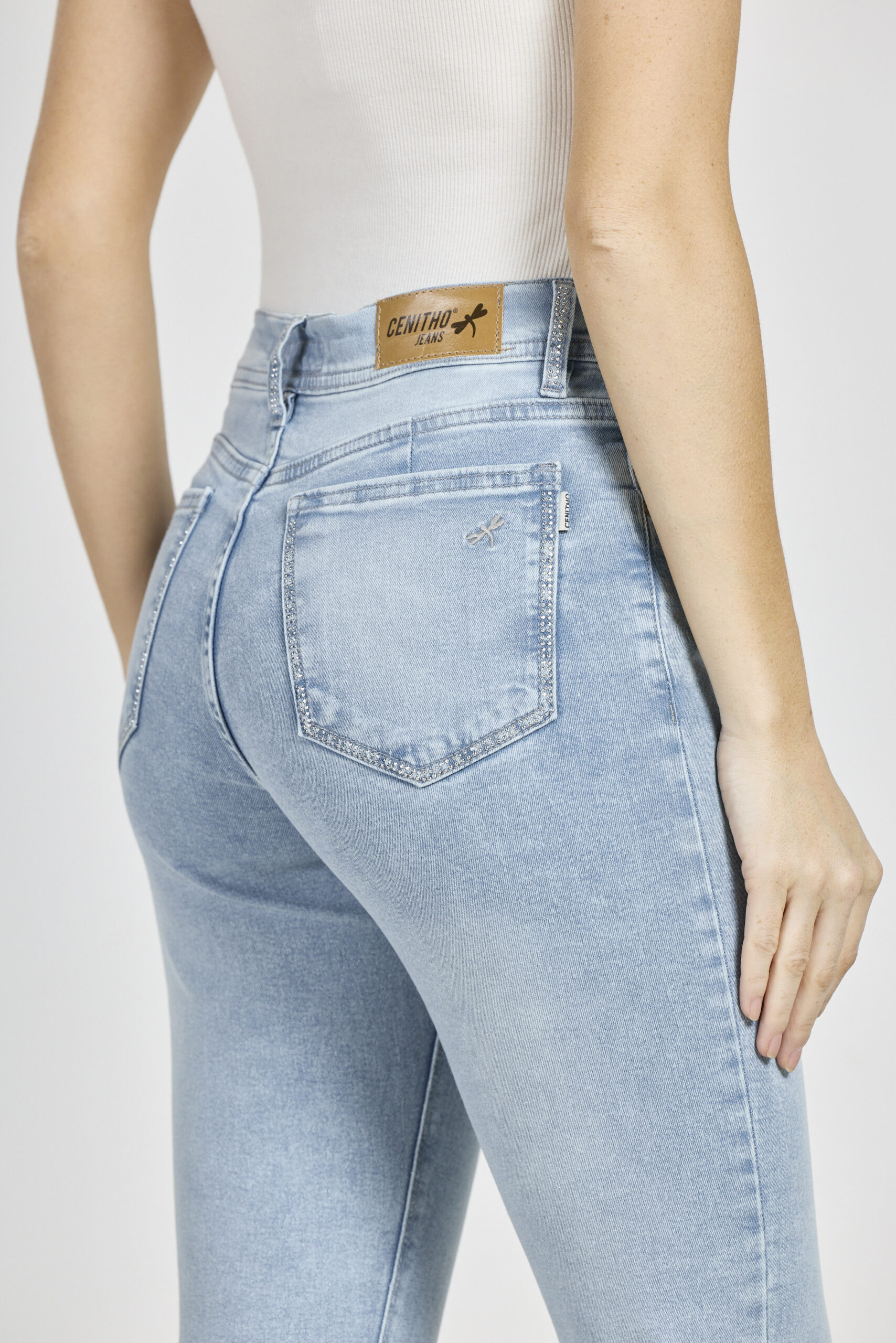 ART. 351 | CLASICO CELESTE CON STRASS EN BOLSILLO Y PASA CINTO ELASTIZADO