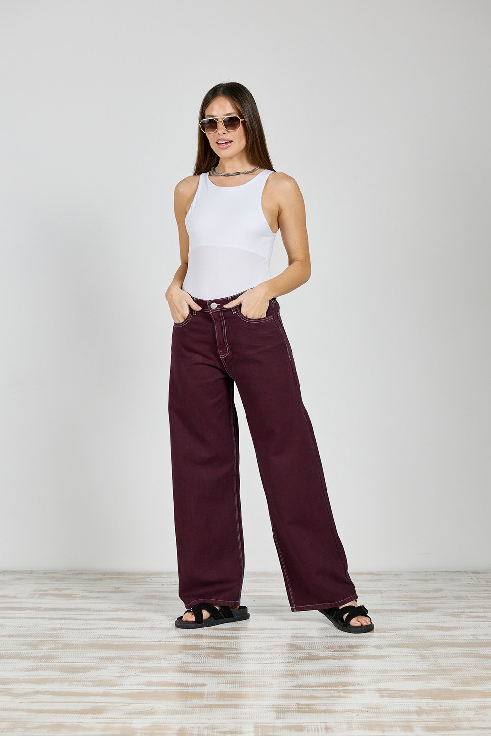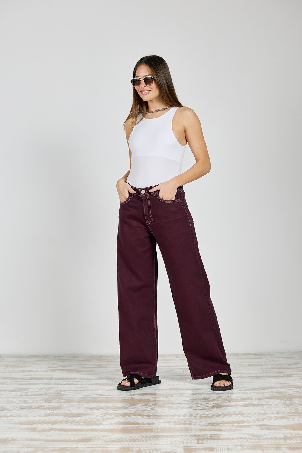 ART. 374 | WIDE LEG CLÁSICO BORDÓ ELASTIZADO