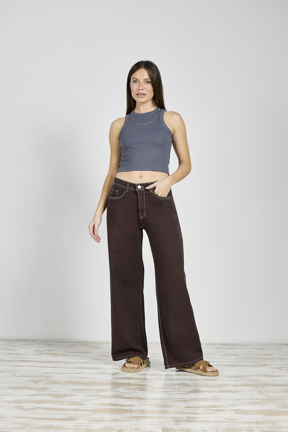 ART. 394 | WIDE LEG CLÁSICO CHOCOLATE RÍGIDO