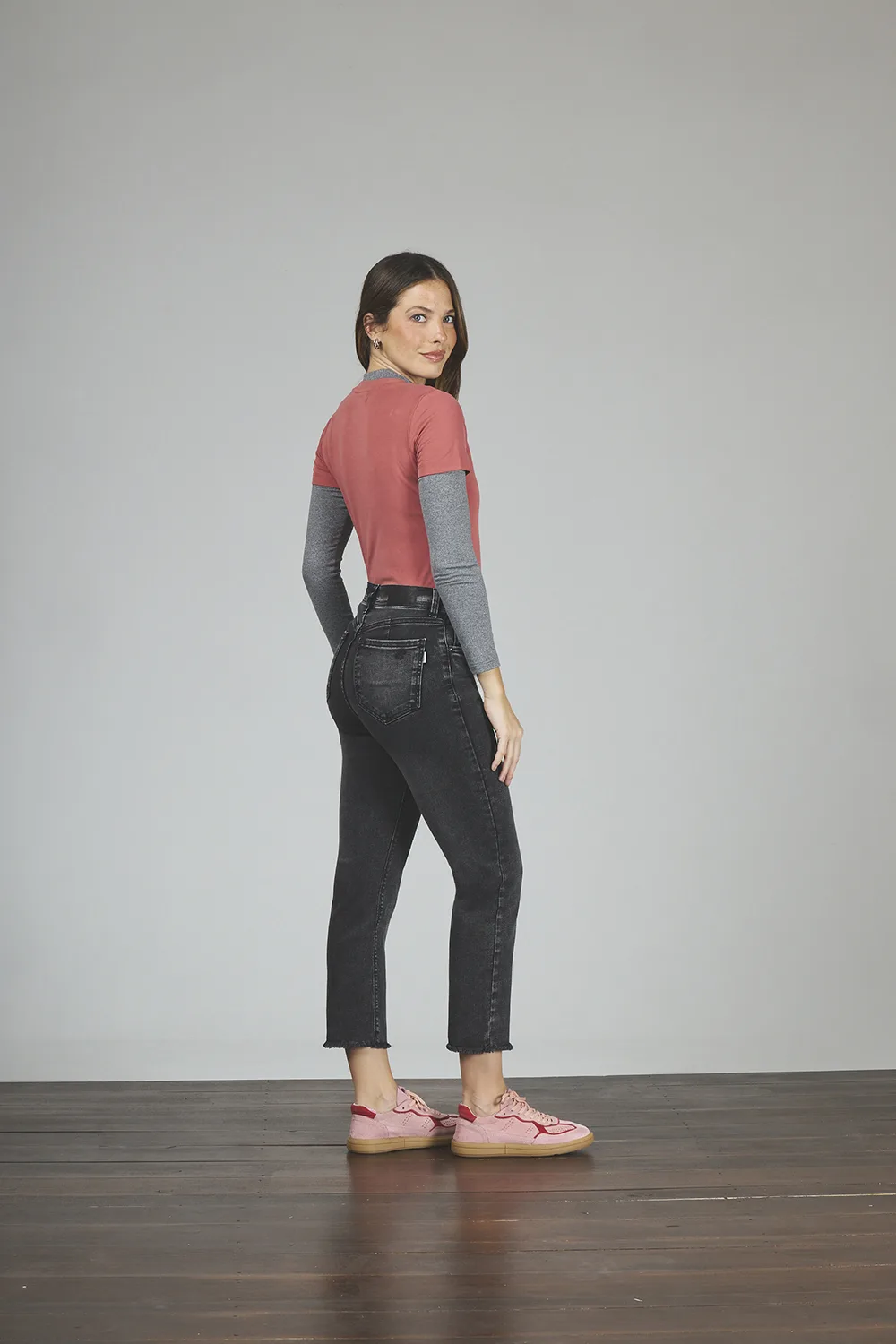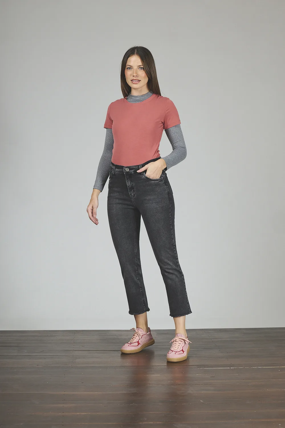 ART. 153 | CROP SEMI OXFORD STONE CON TAJO EN BOTA ELASTIZADO