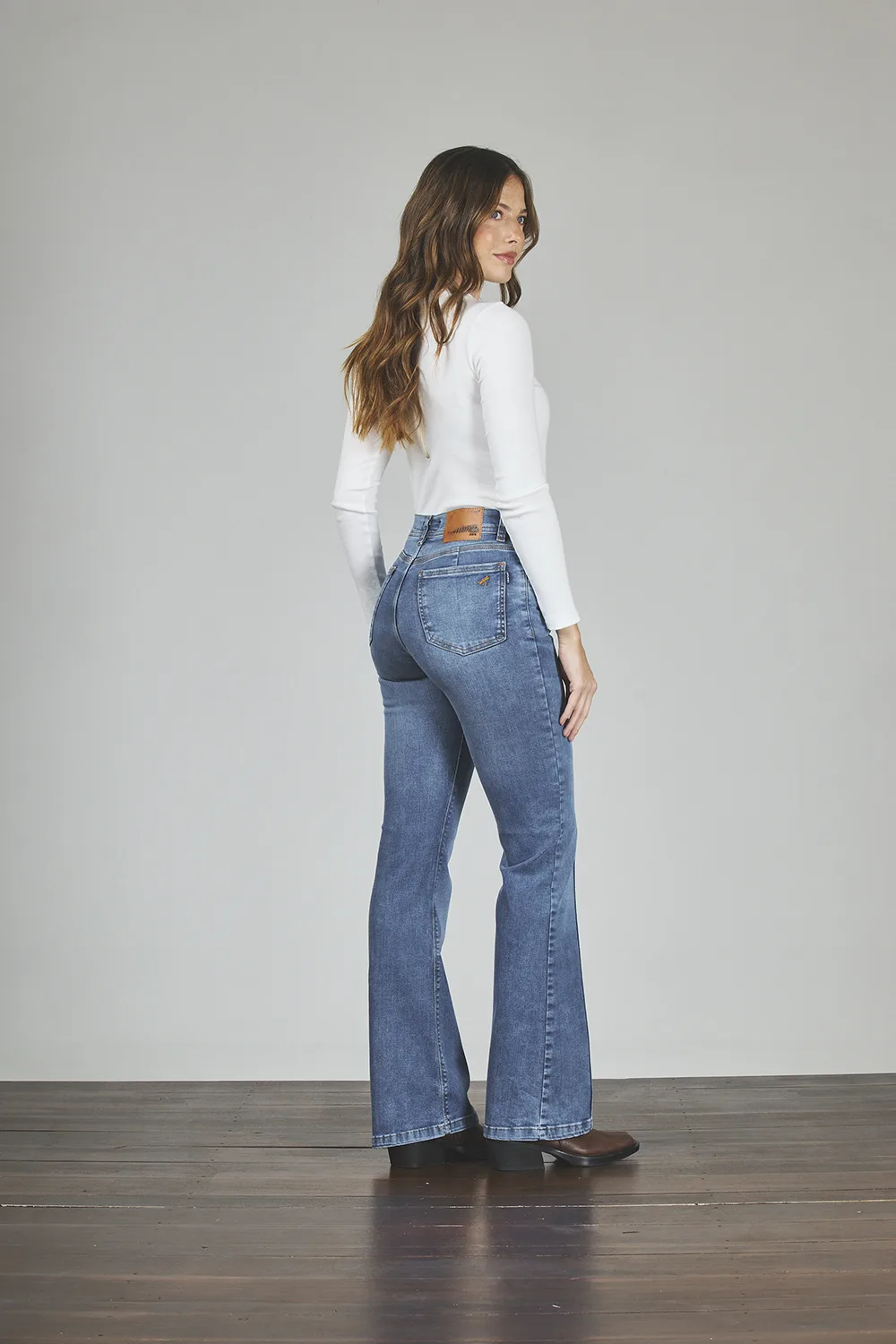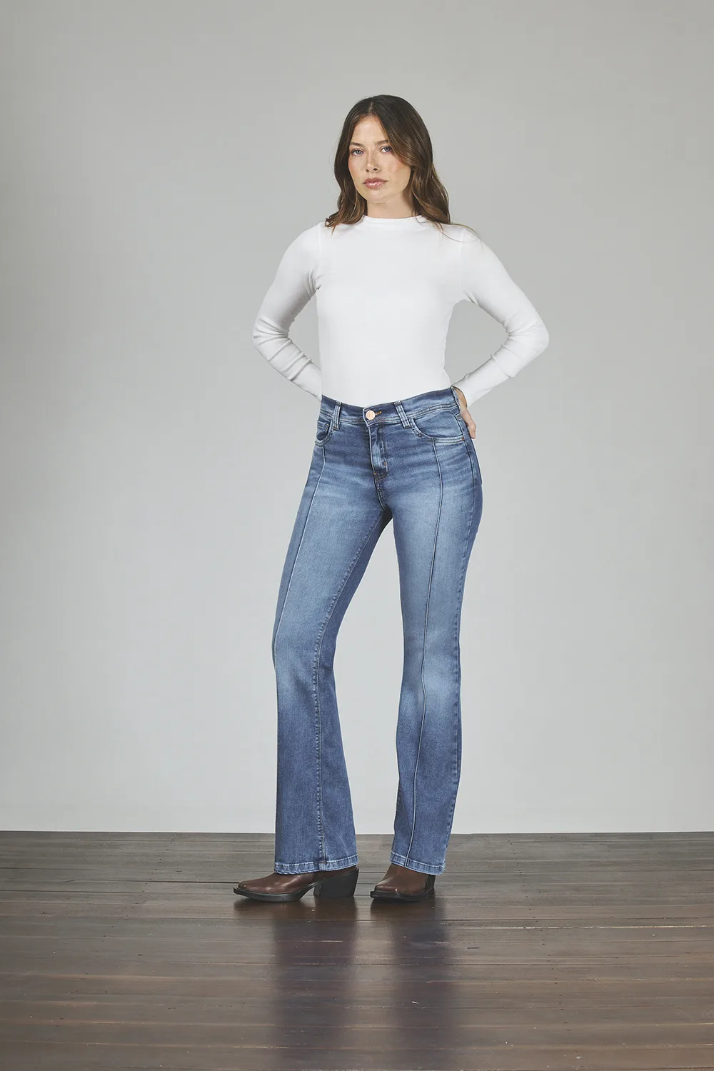 ART. 153 | CROP SEMI OXFORD STONE CON TAJO EN BOTA ELASTIZADO