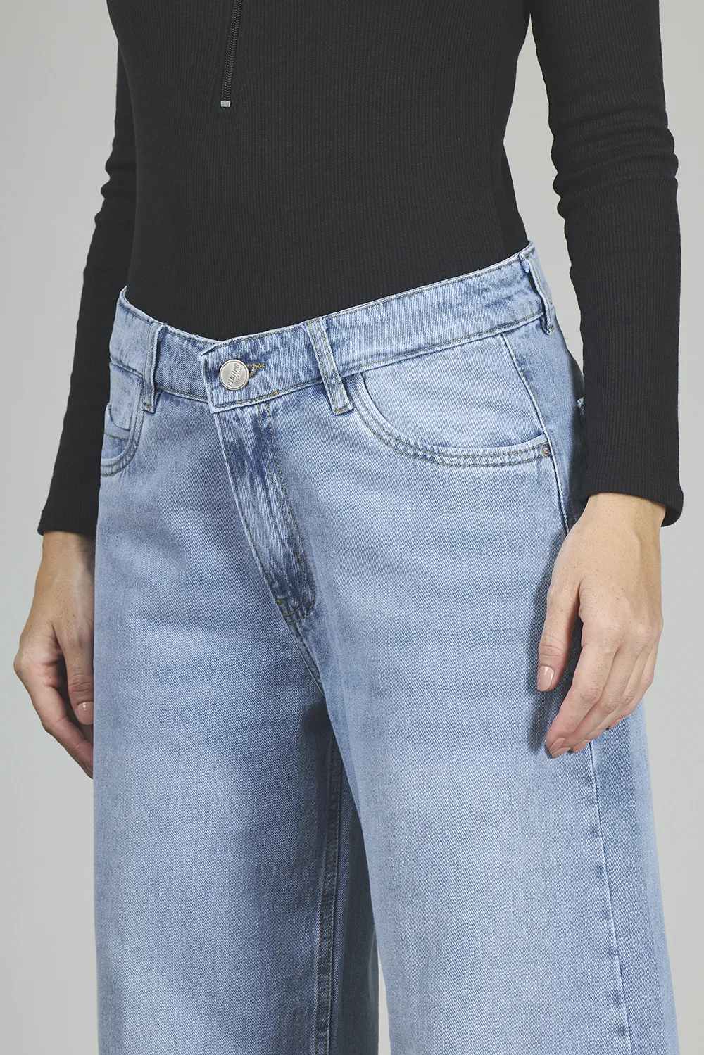 ART. 153 | CROP SEMI OXFORD STONE CON TAJO EN BOTA ELASTIZADO