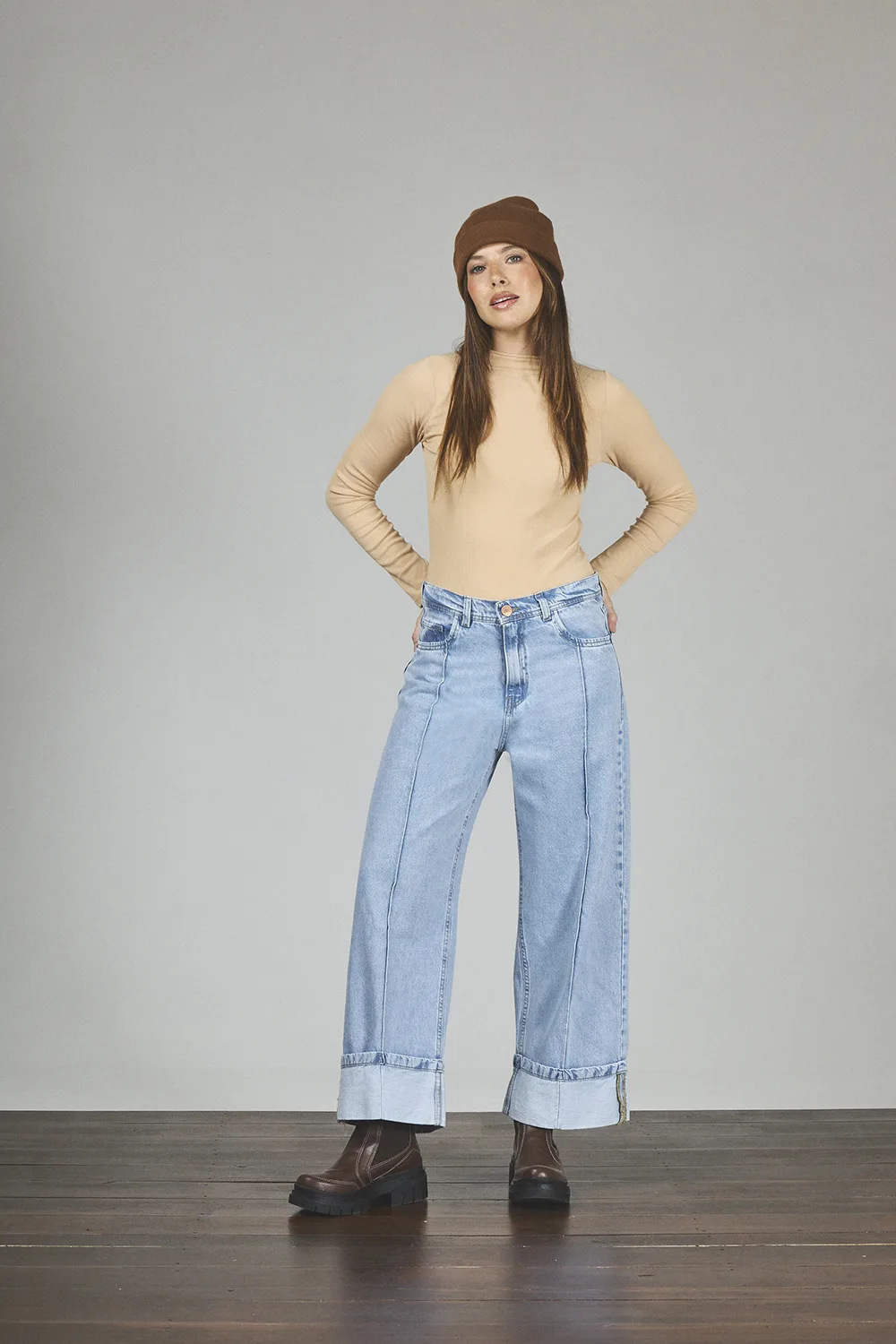 ART. 441 | CROP CELESTE CON ALFORZA BOTA REMANGADA RÍGIDO - Imagen 1