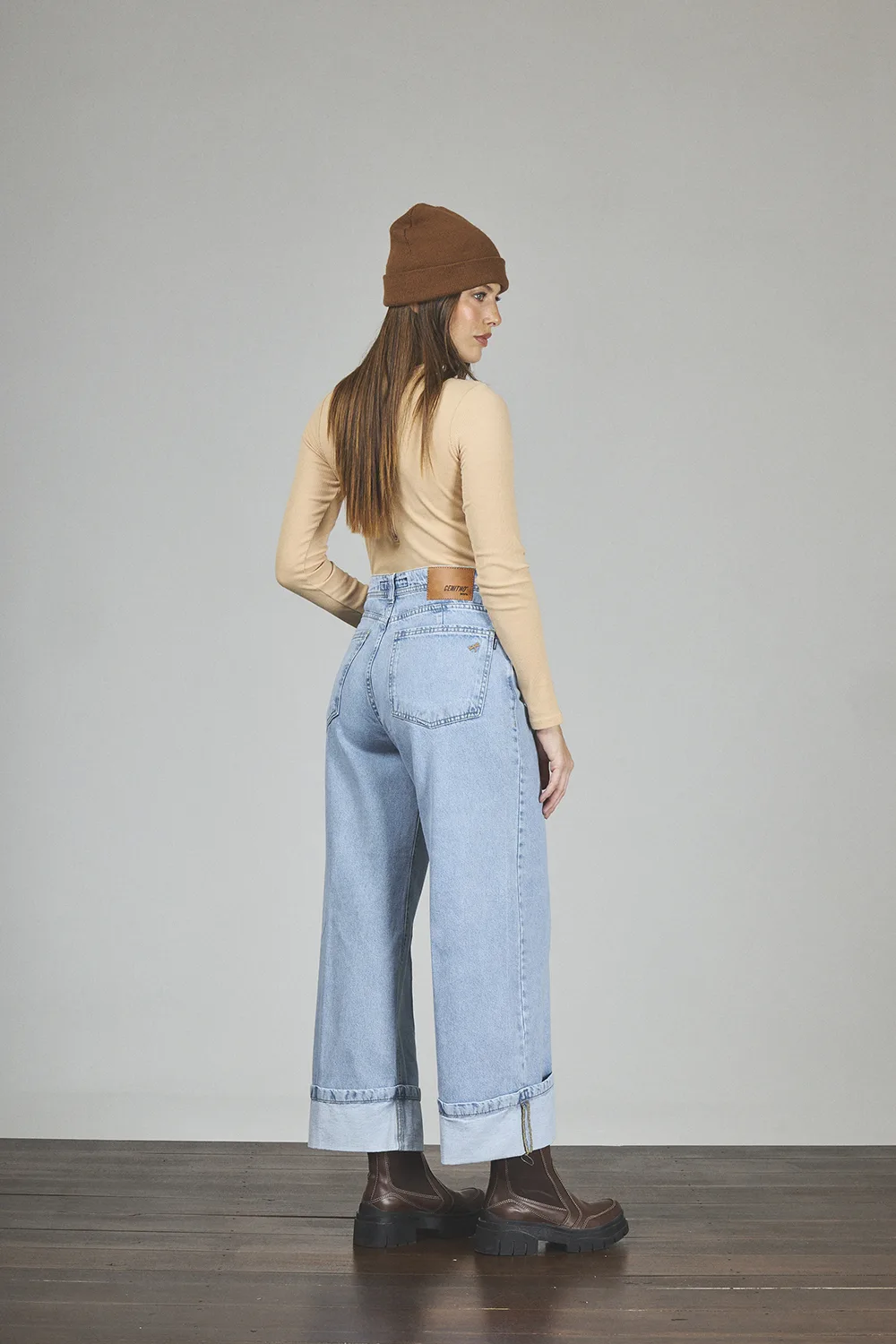 ART. 285 | CROP WIDE LEG CELESTE BOTA DESCOCIDA RÍGIDO