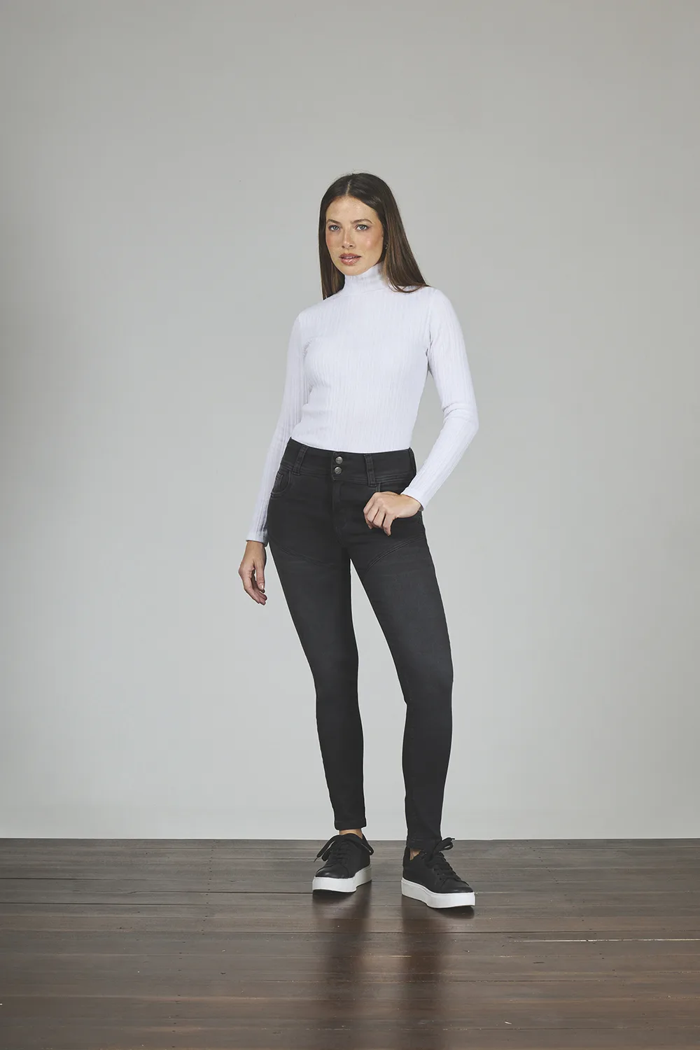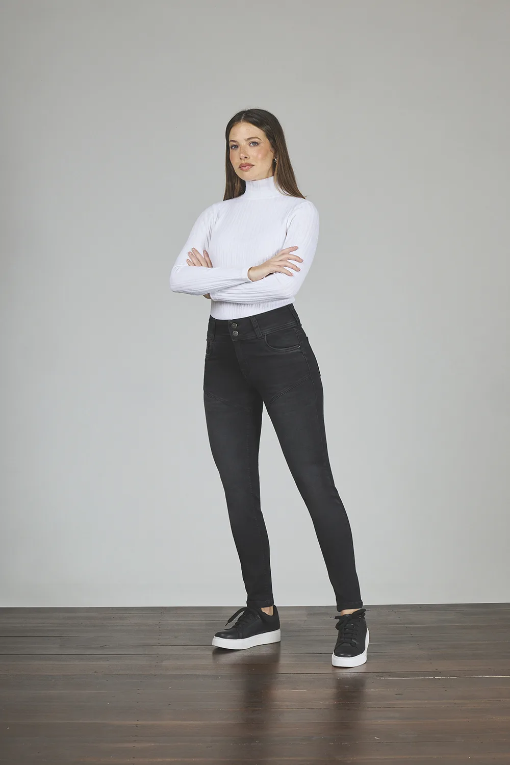 ART. 443 | CHUPÍN NEGRO HUMO CON RECORTE Y CINTURA ANCHA ELASTIZADO