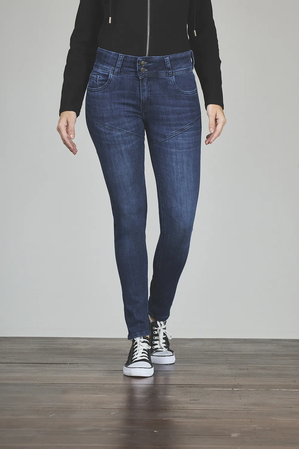 ART. 445 | CHUPÍN AZUL CON RECORTE Y CINTURA ANCHA ELASTIZADO