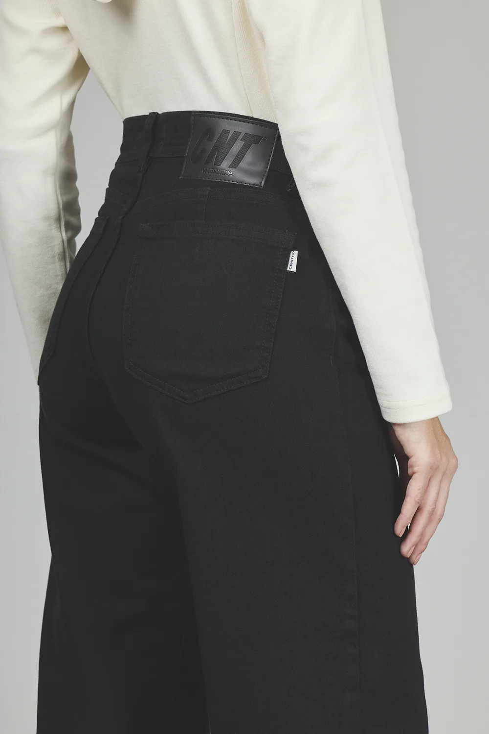ART. 348 | CROP SEMI OXFORD NEGRO DEFLECADO C/ABERTURA EN BOTA ELASTIZADO