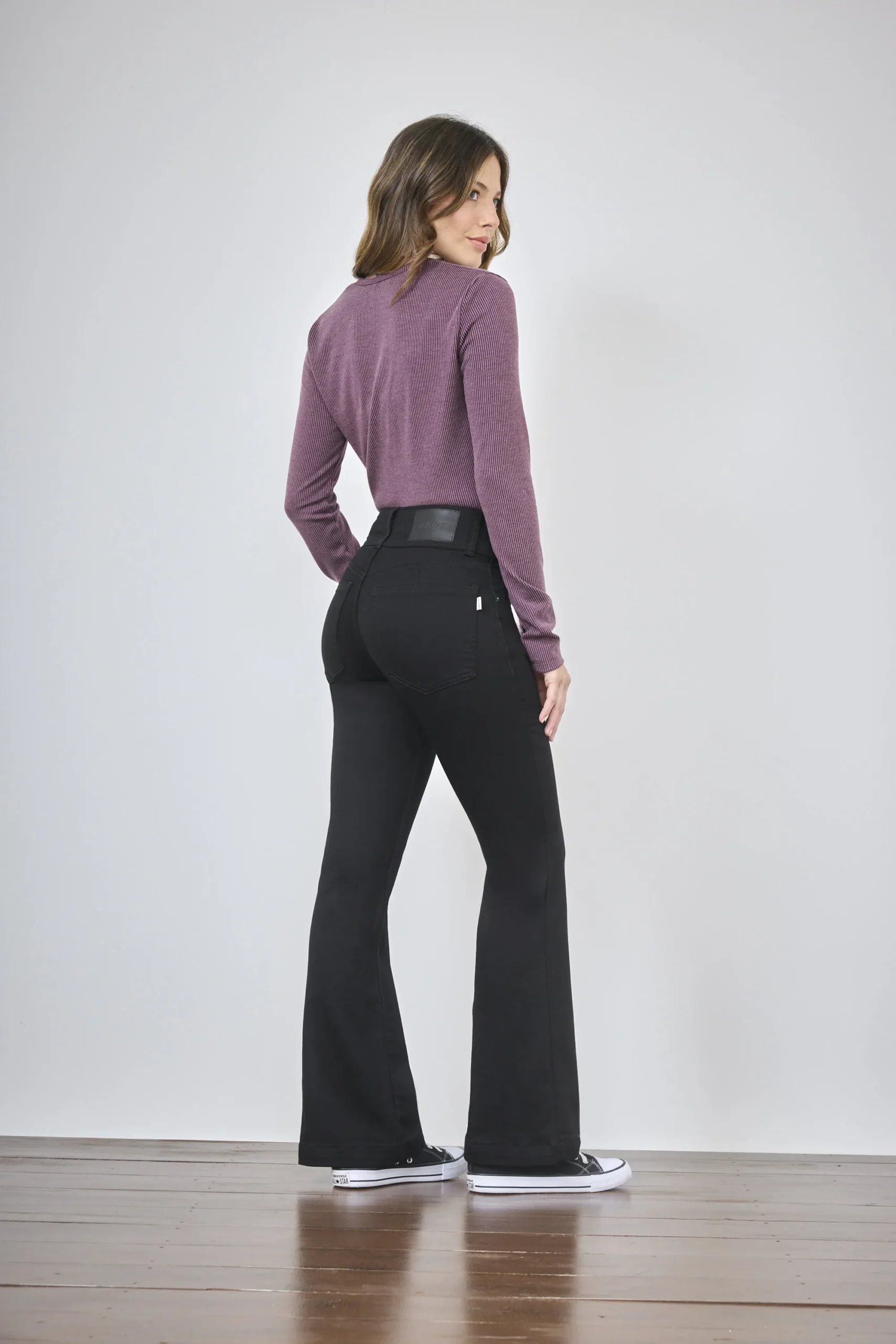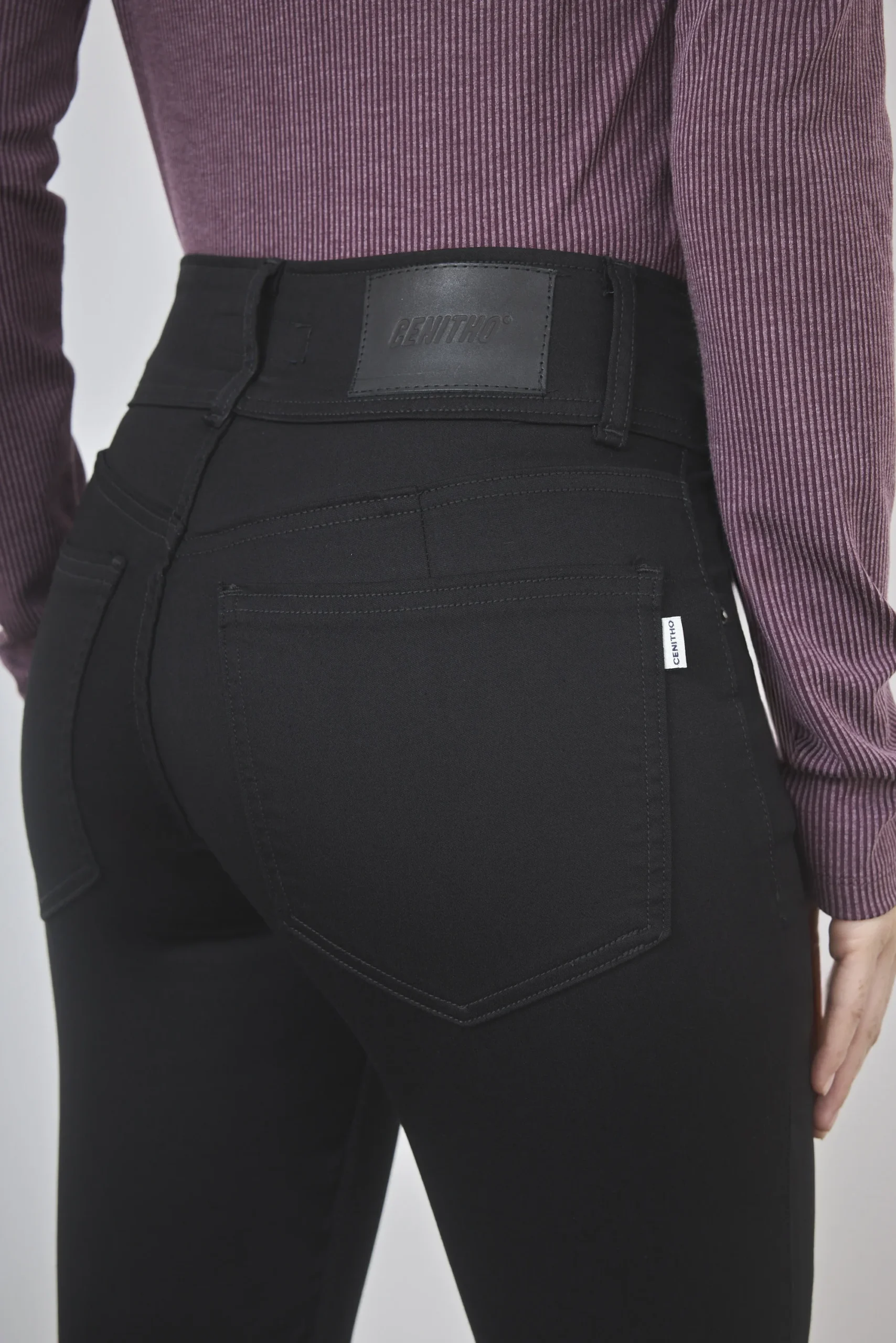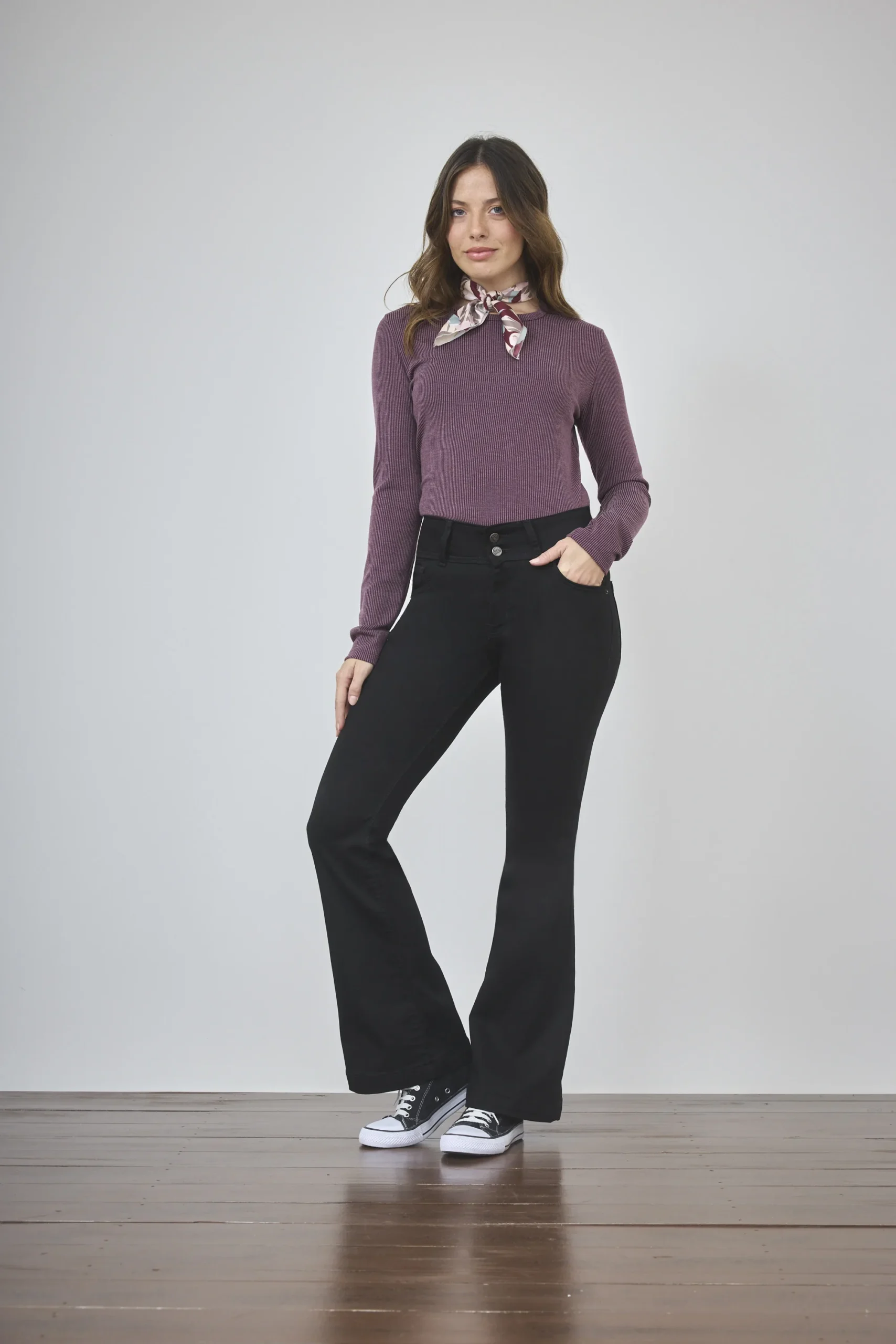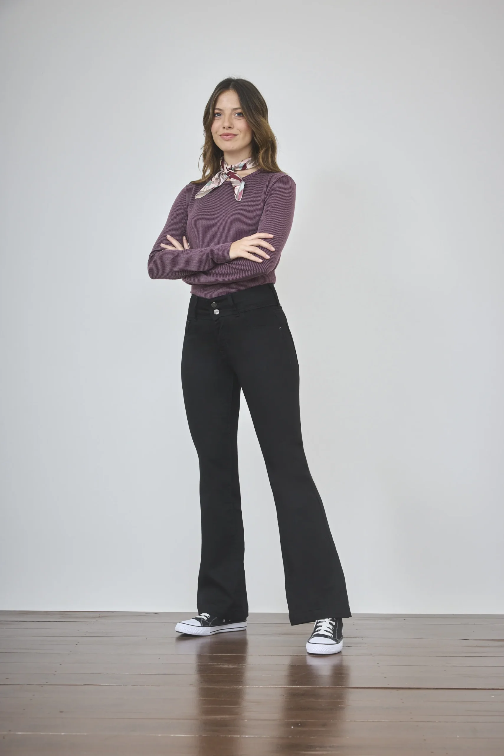 ART. 348 | CROP SEMI OXFORD NEGRO DEFLECADO C/ABERTURA EN BOTA ELASTIZADO