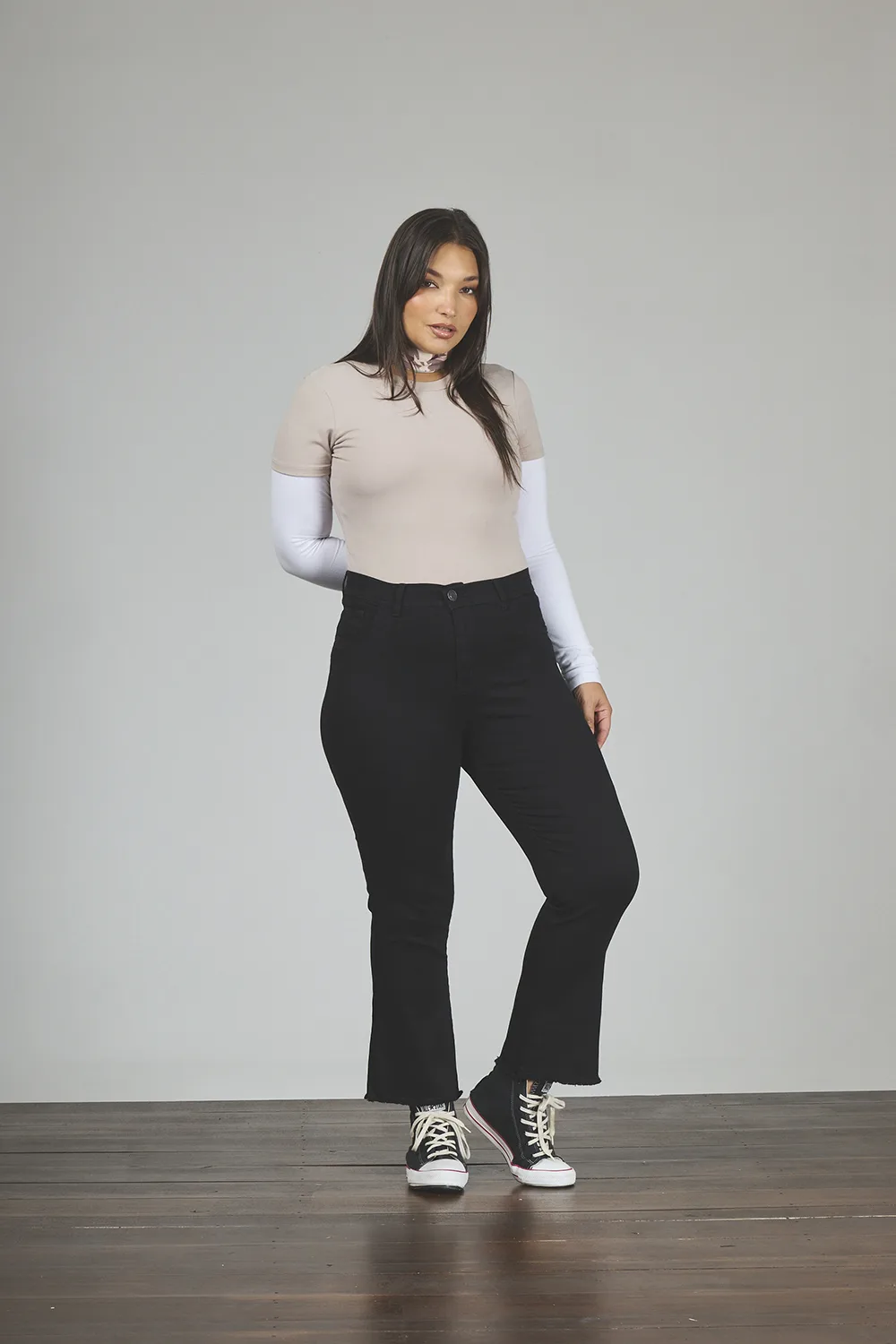 ART. 858 | CROP SEMI OXFORD NEGRO ABERTURA BOTA DEFLECADO ELASTIZADO