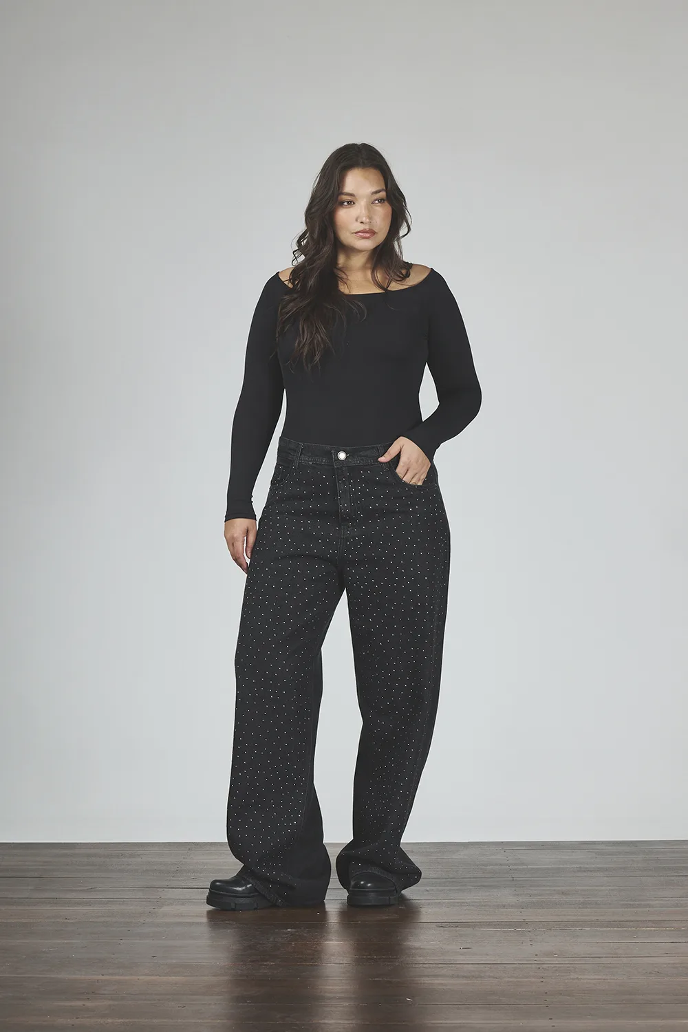 ART. 882 | WIDE LEG NEGRO CON STRAS RÍGIDO