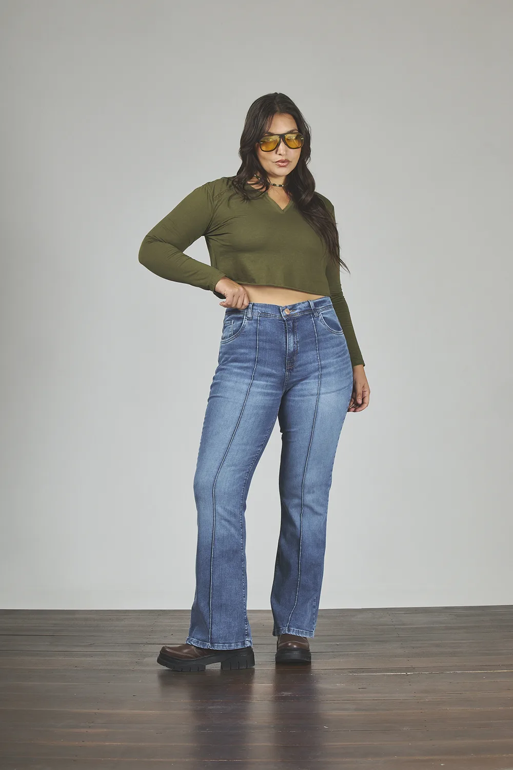 ART. 822 | CROP SEMI OXFORD CELESTE CLÁSICO DEFLECADO ELASTIZADO