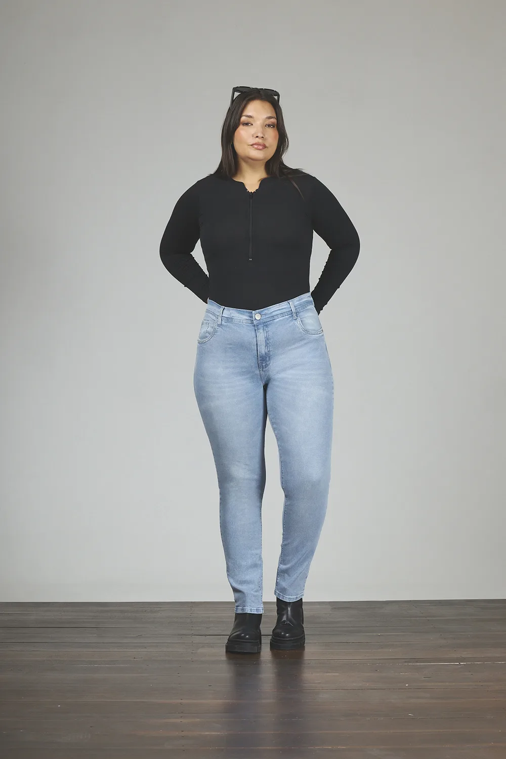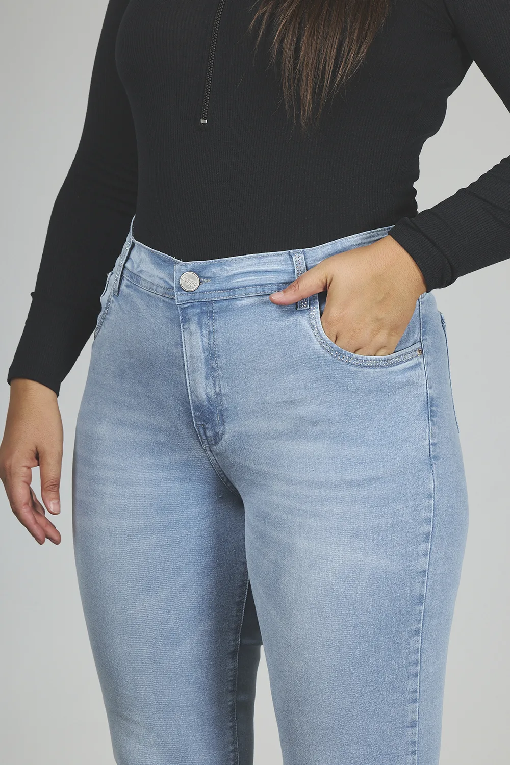 ART. 890 | DAMA CLÁSICO CELESTE CON STRAS BOLSILLO Y PASACINTO