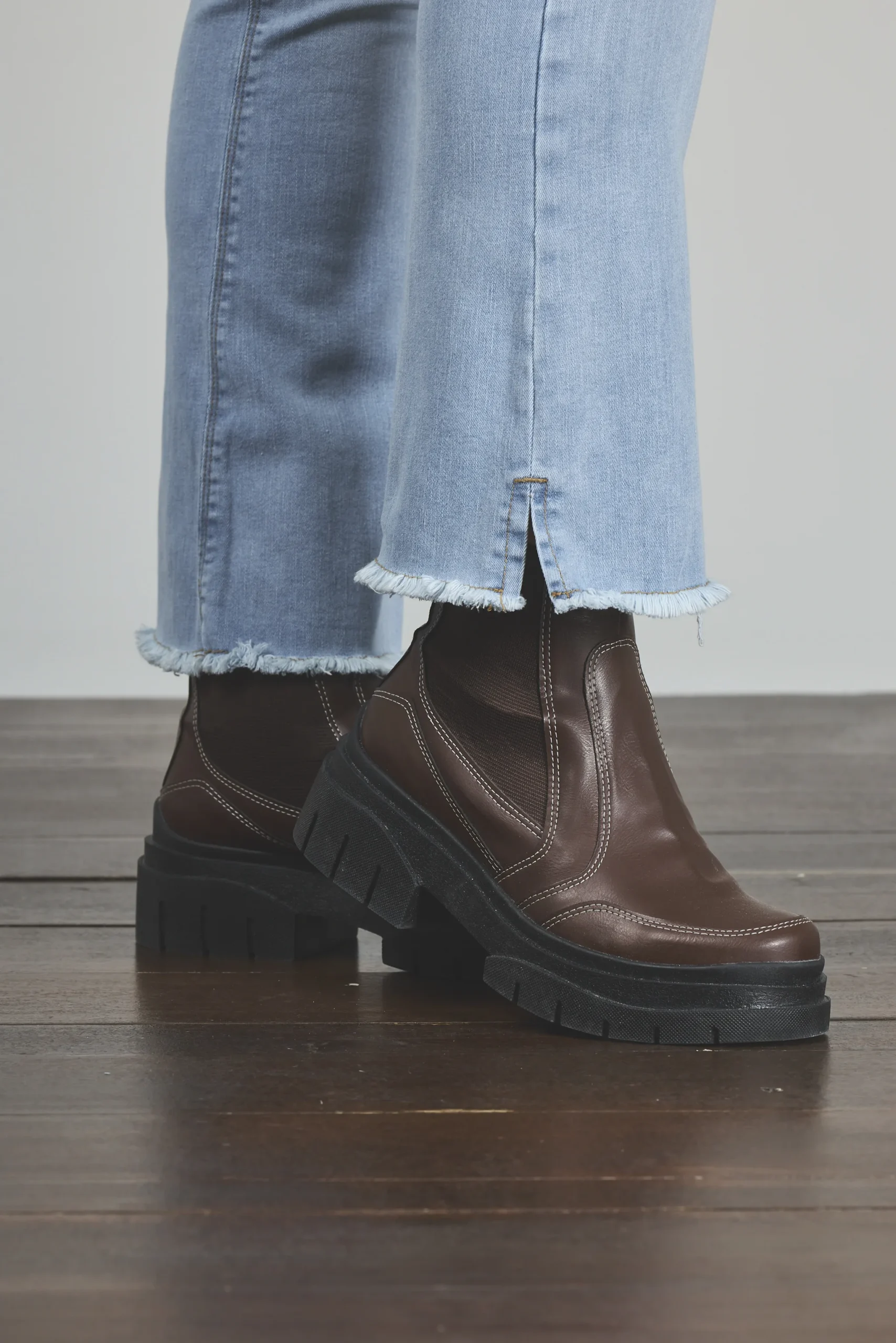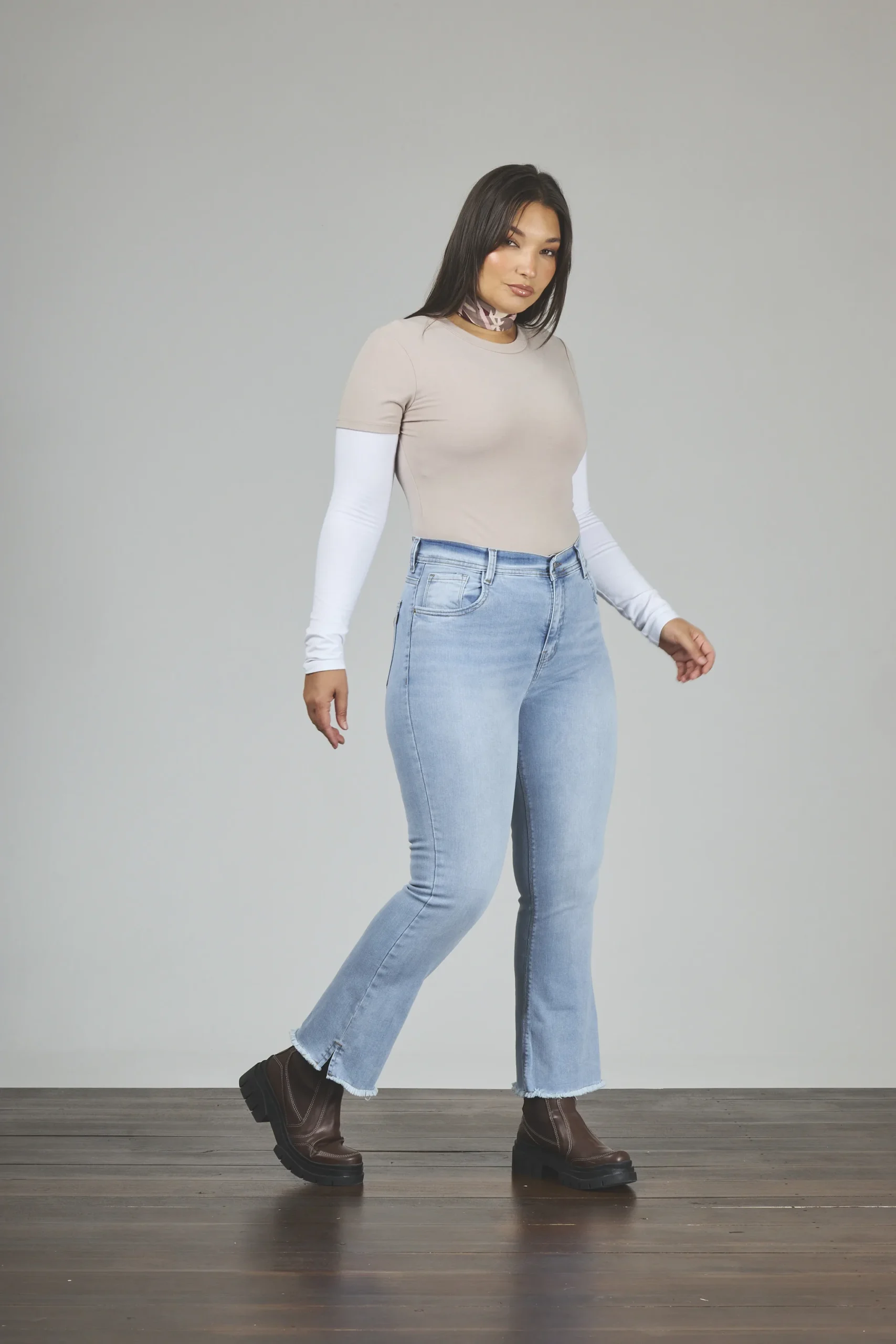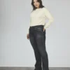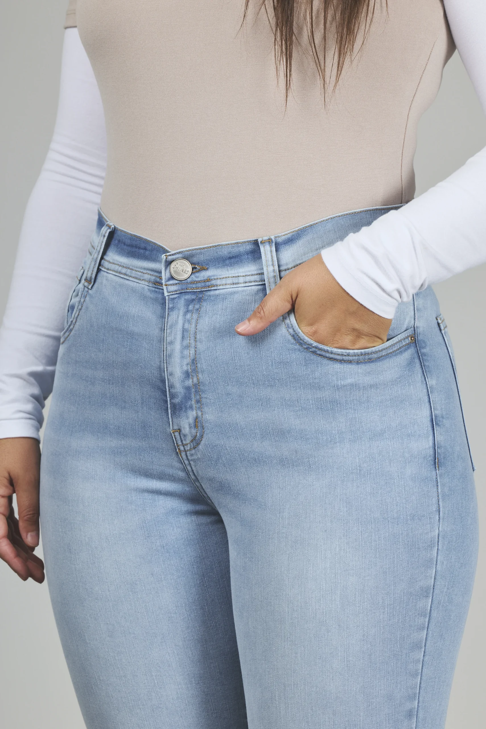 ART. 895 | CROP SEMI OXFORD CELESTE DEFLECADO CON ABERTURA LAT ELASTIZADO