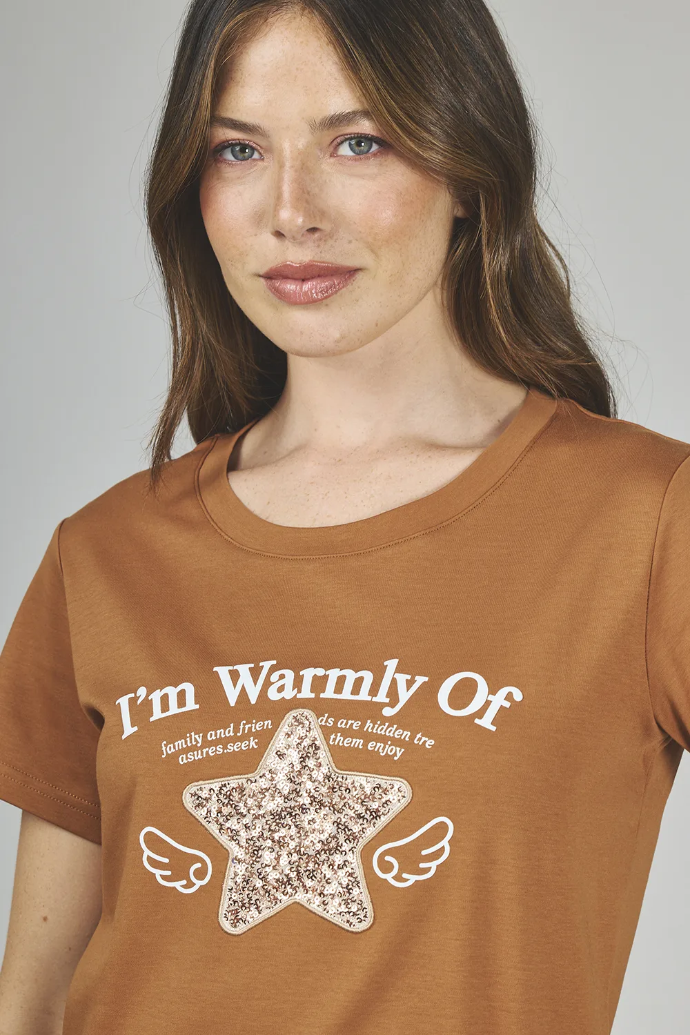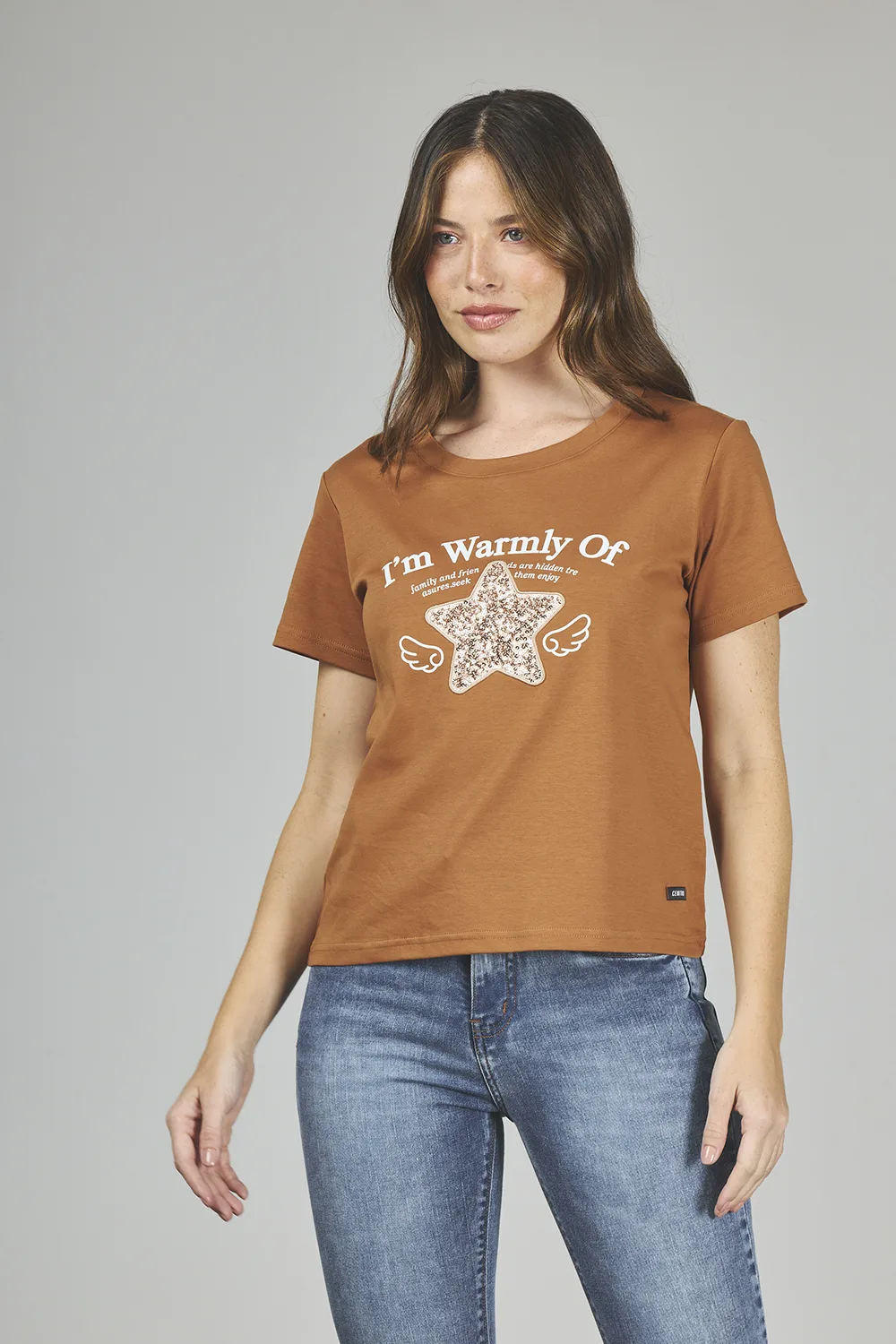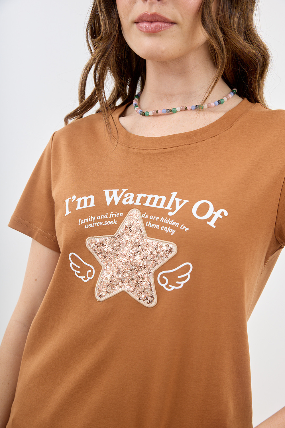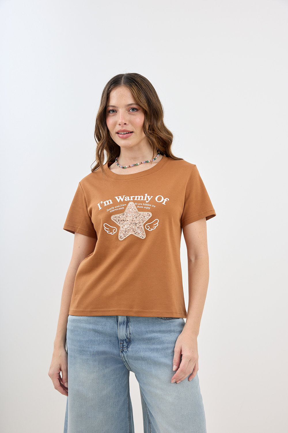 ART. A-44 | REMERA CHOCOLATE BORDADO STAR/LENTEJUELAS