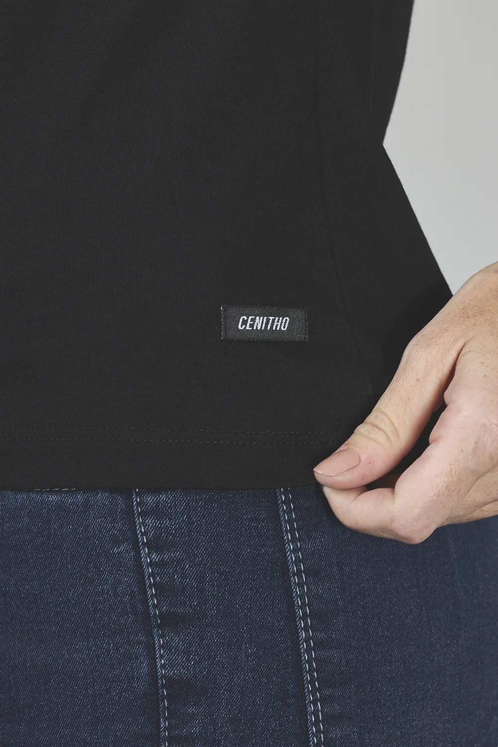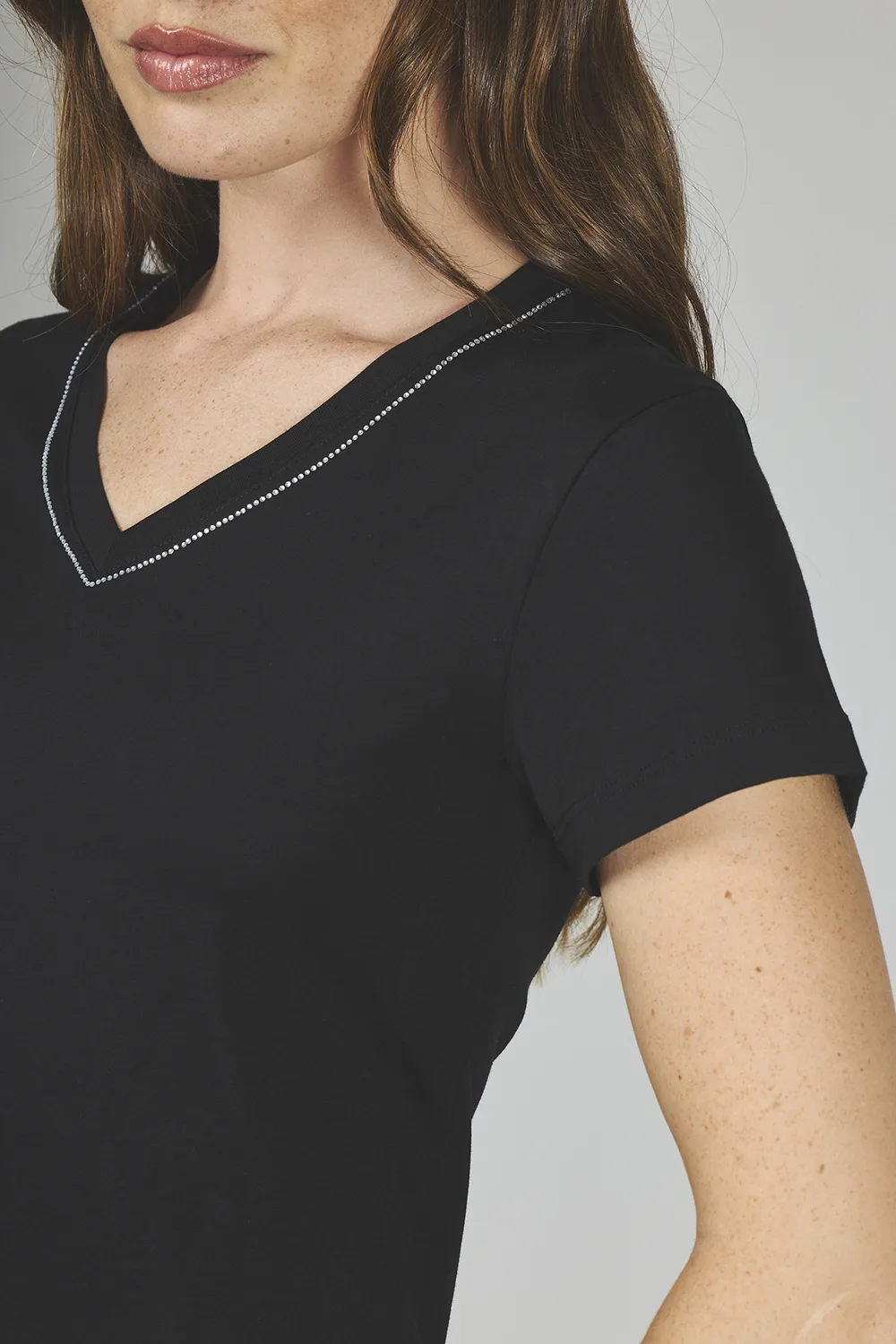 ART. A-46 | REMERA NEGRA CUELLO EN V CON BRILLO
