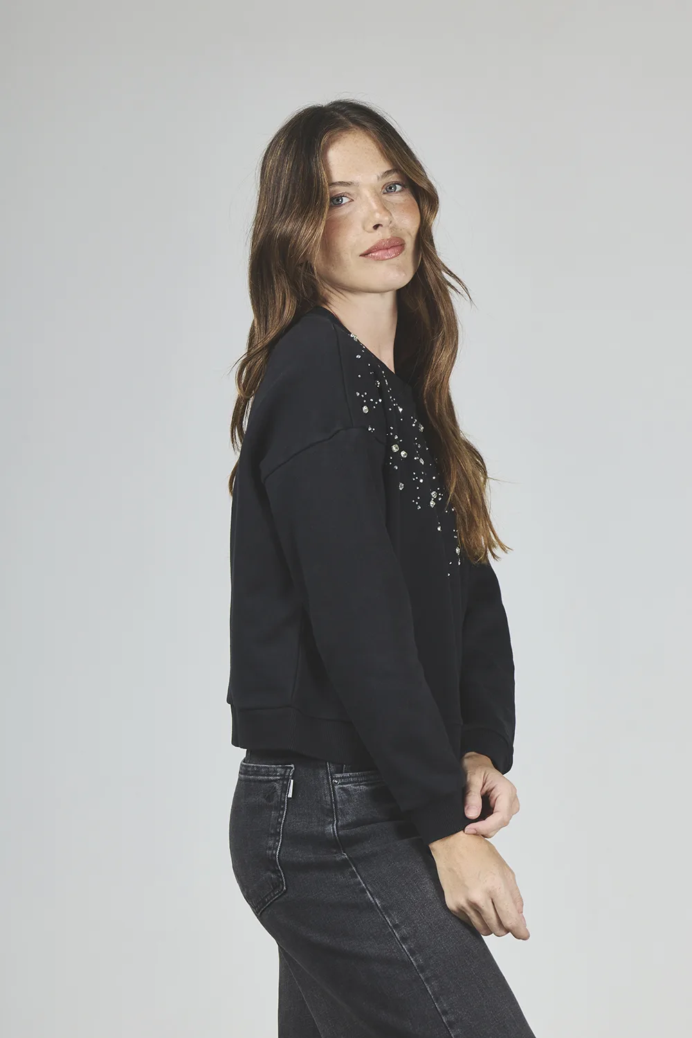 ART. A-56 | BUZO BOXI NEGRO CON STRASS EN LLUVIA