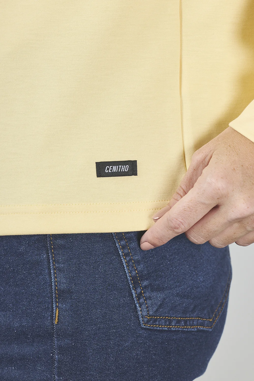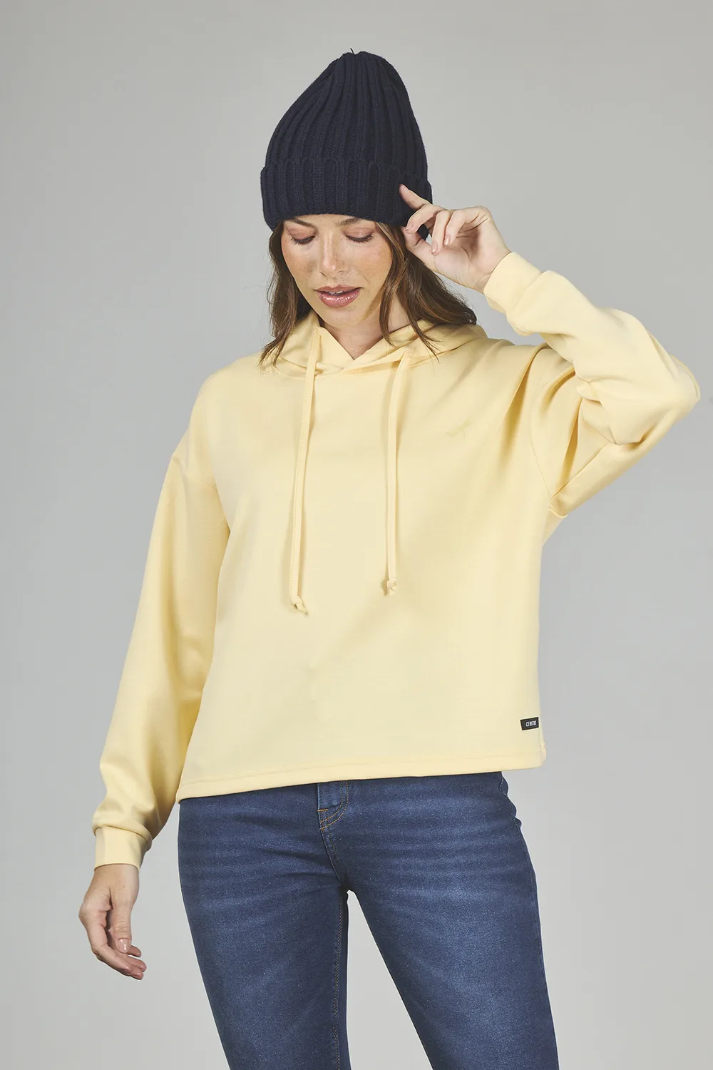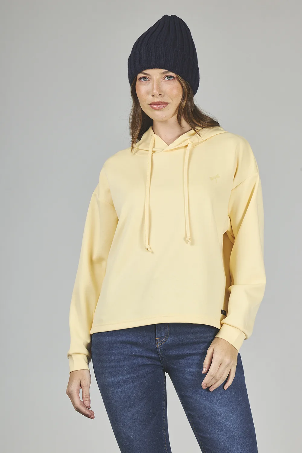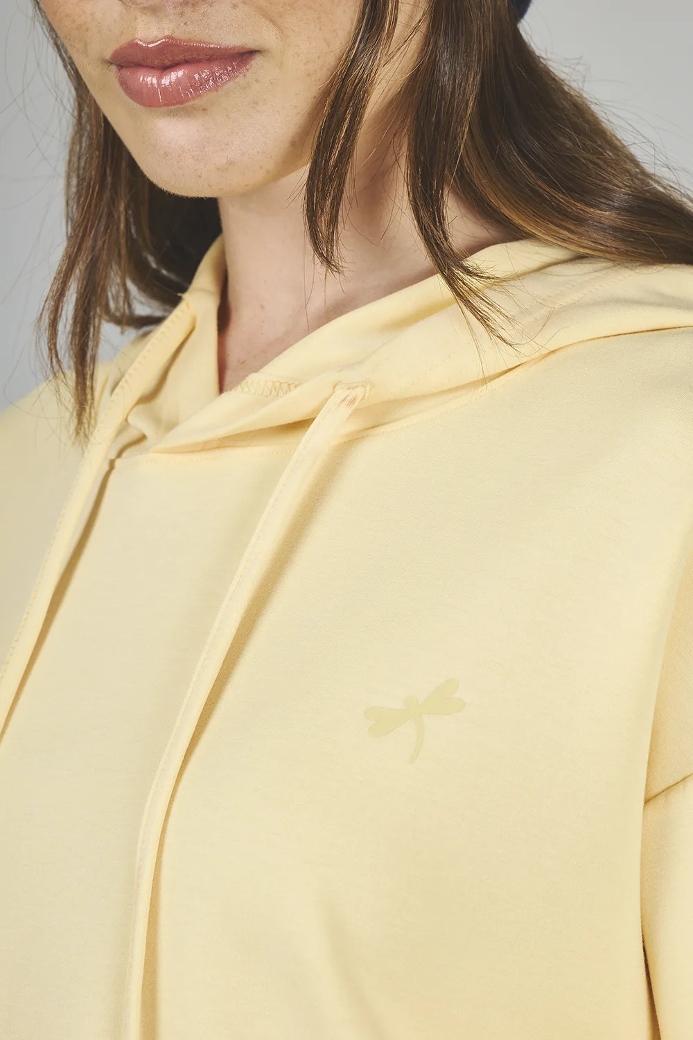 ART. A-65 | BUZO CROP AMARILLO CON CAPUCHA LIBELULA