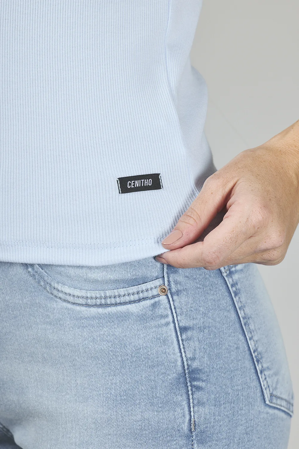 ART. A-84 | MUSCULOSA CELESTE ESCOTE CERRADO ALGODON