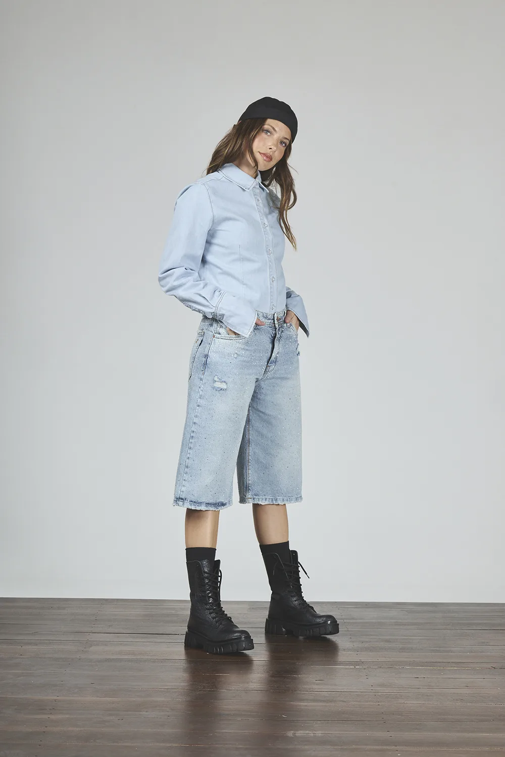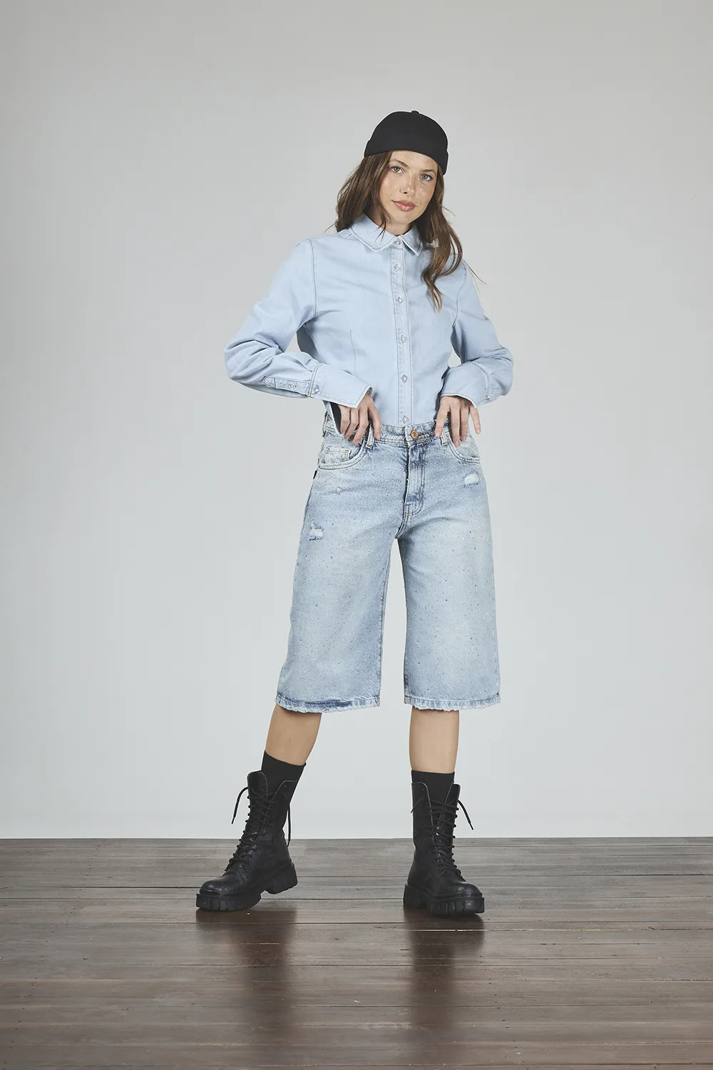 ART. C-143 | BERMUDA MAXI BAGGY CELESTE CON BRILLO RÍGIDO - Imagen 6