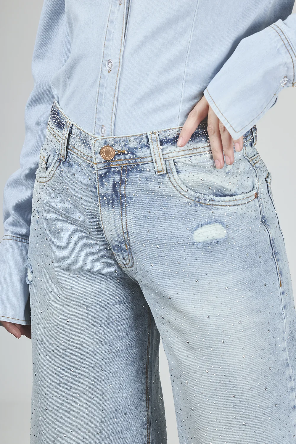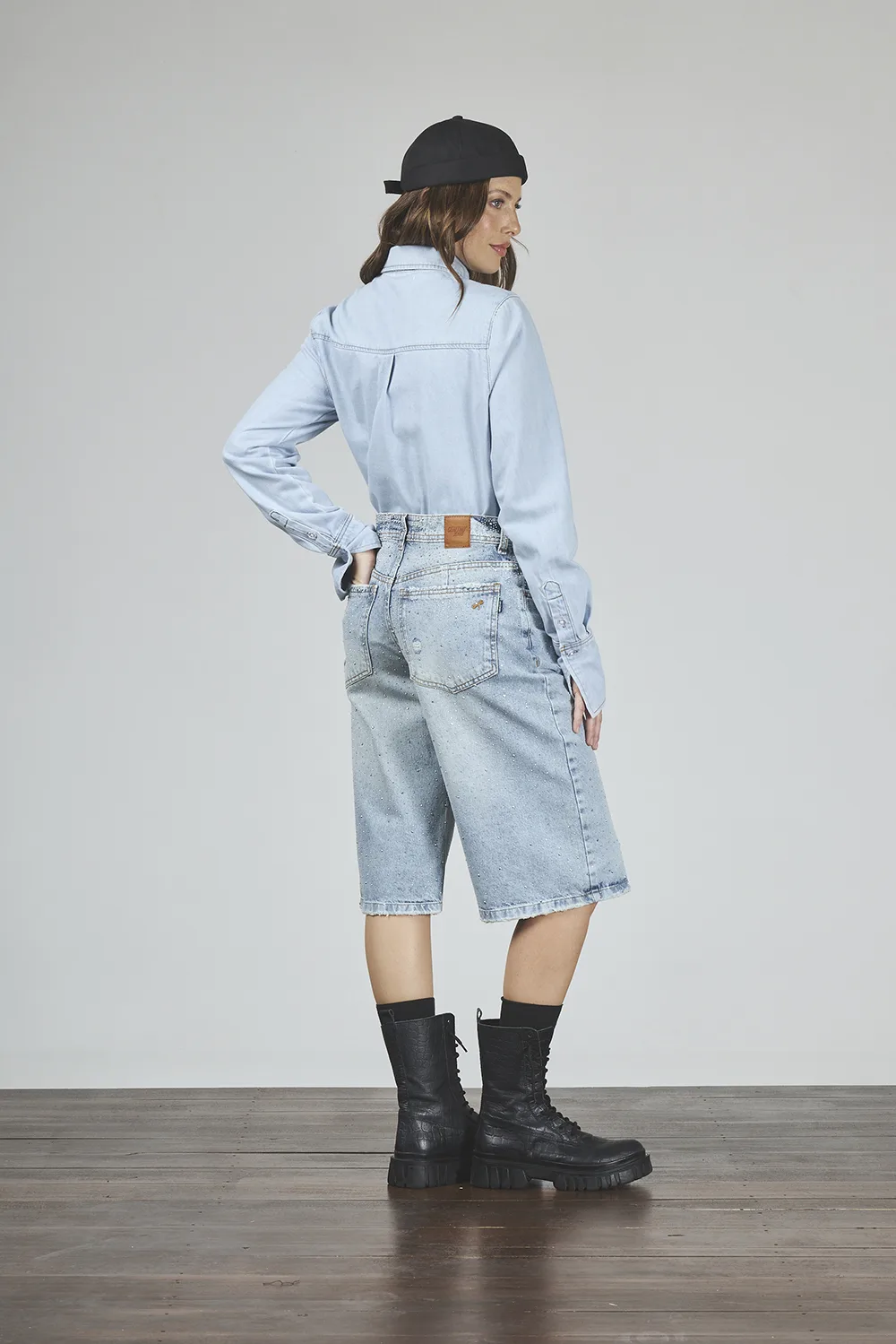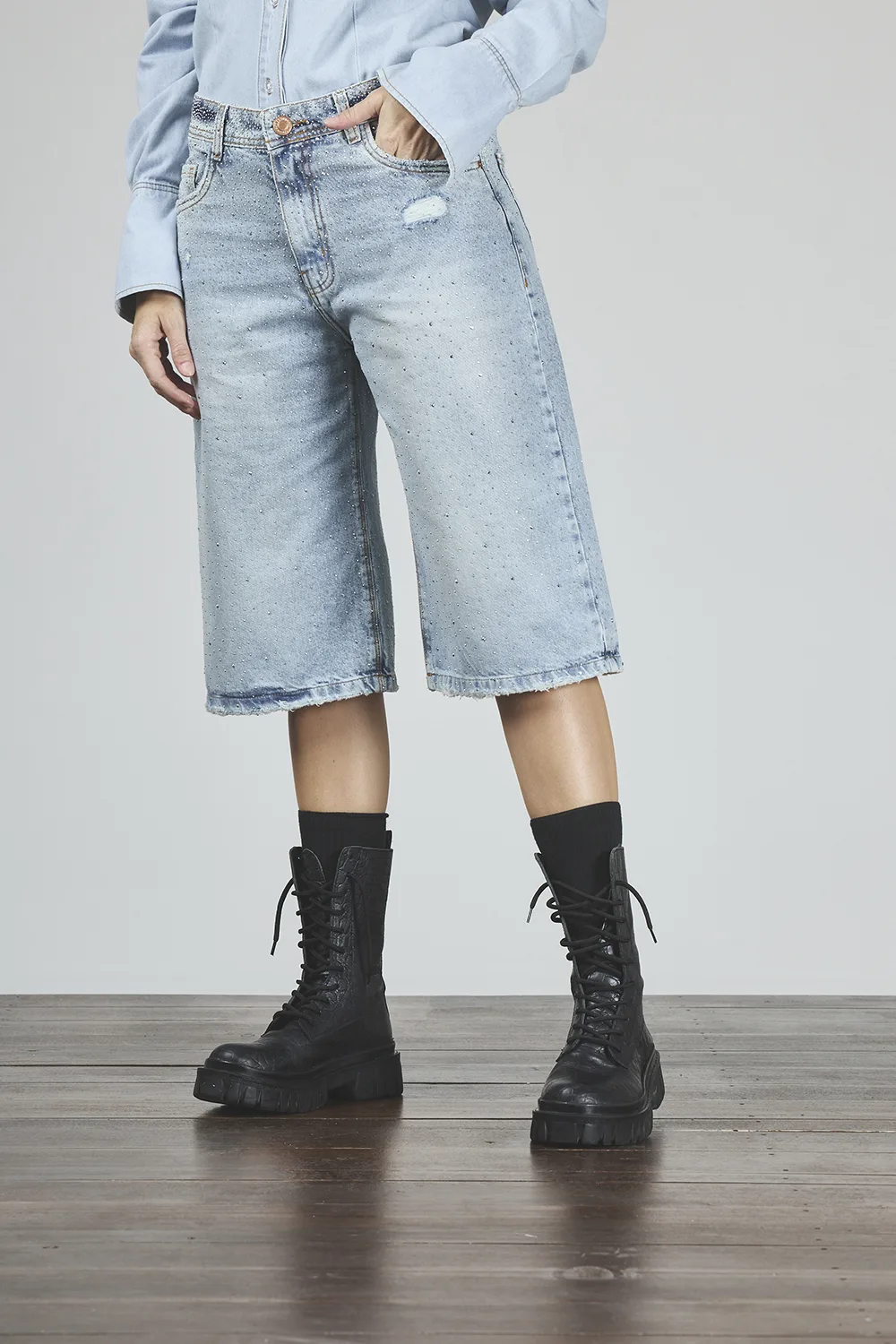 ART. C-143 | BERMUDA MAXI BAGGY CELESTE CON BRILLO RÍGIDO - Imagen 4