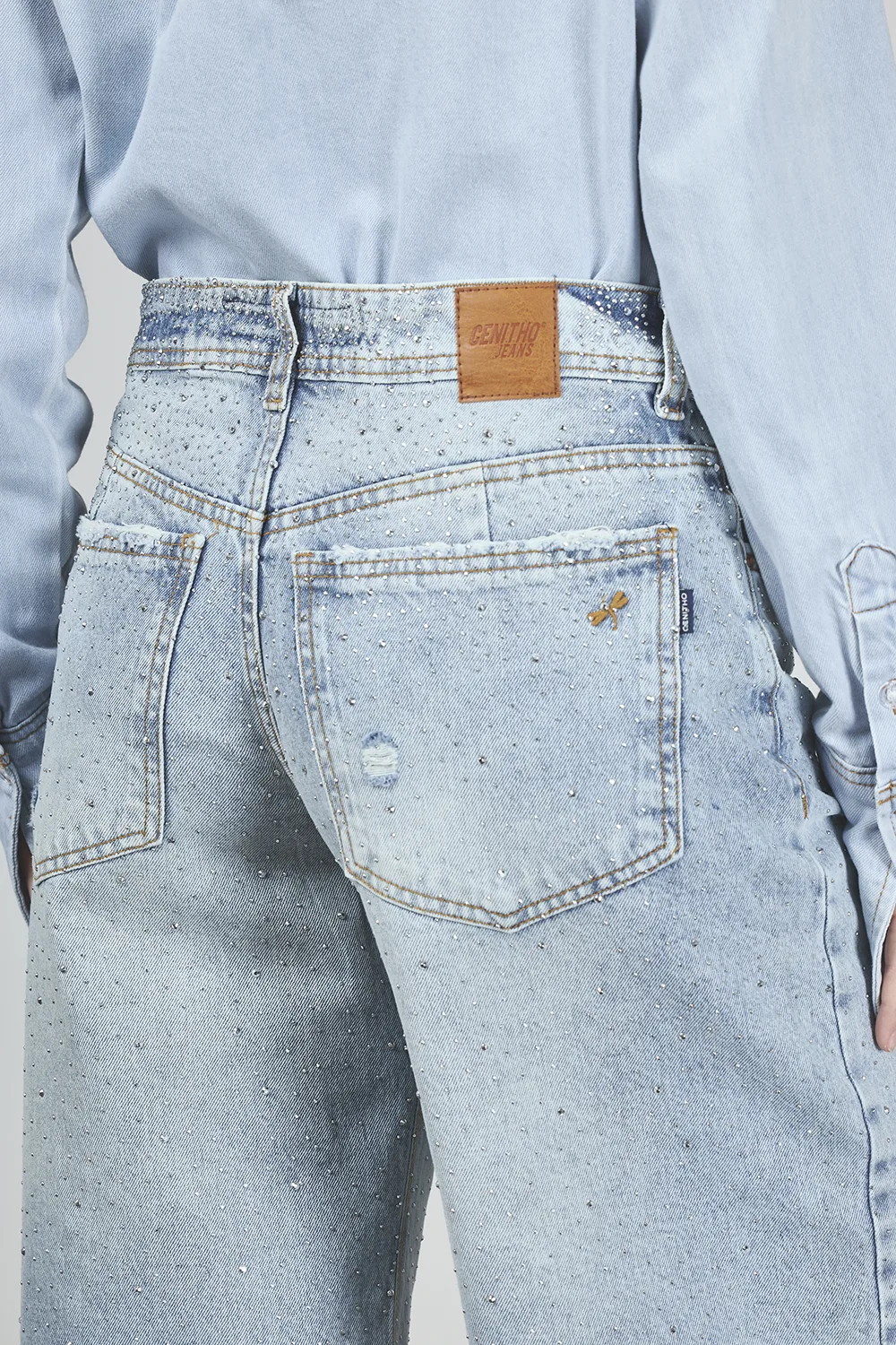 ART. C-143 | BERMUDA MAXI BAGGY CELESTE CON BRILLO RÍGIDO - Imagen 1