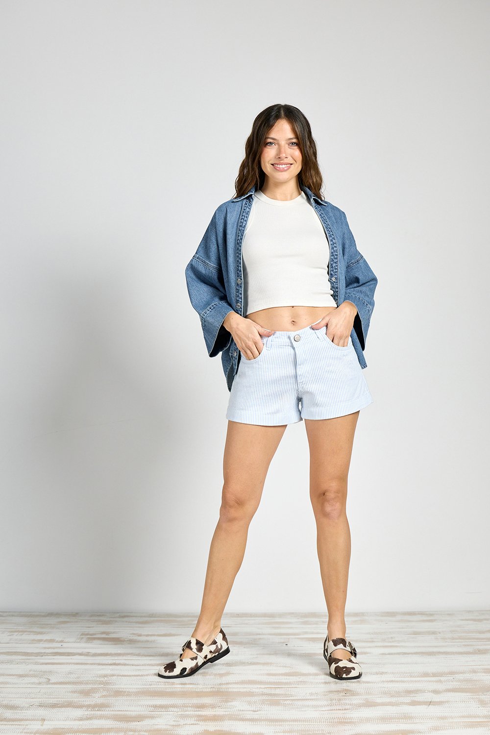 ART. C-94 | SHORT CLÁSICO CELESTE RAYADO RÍGIDO
