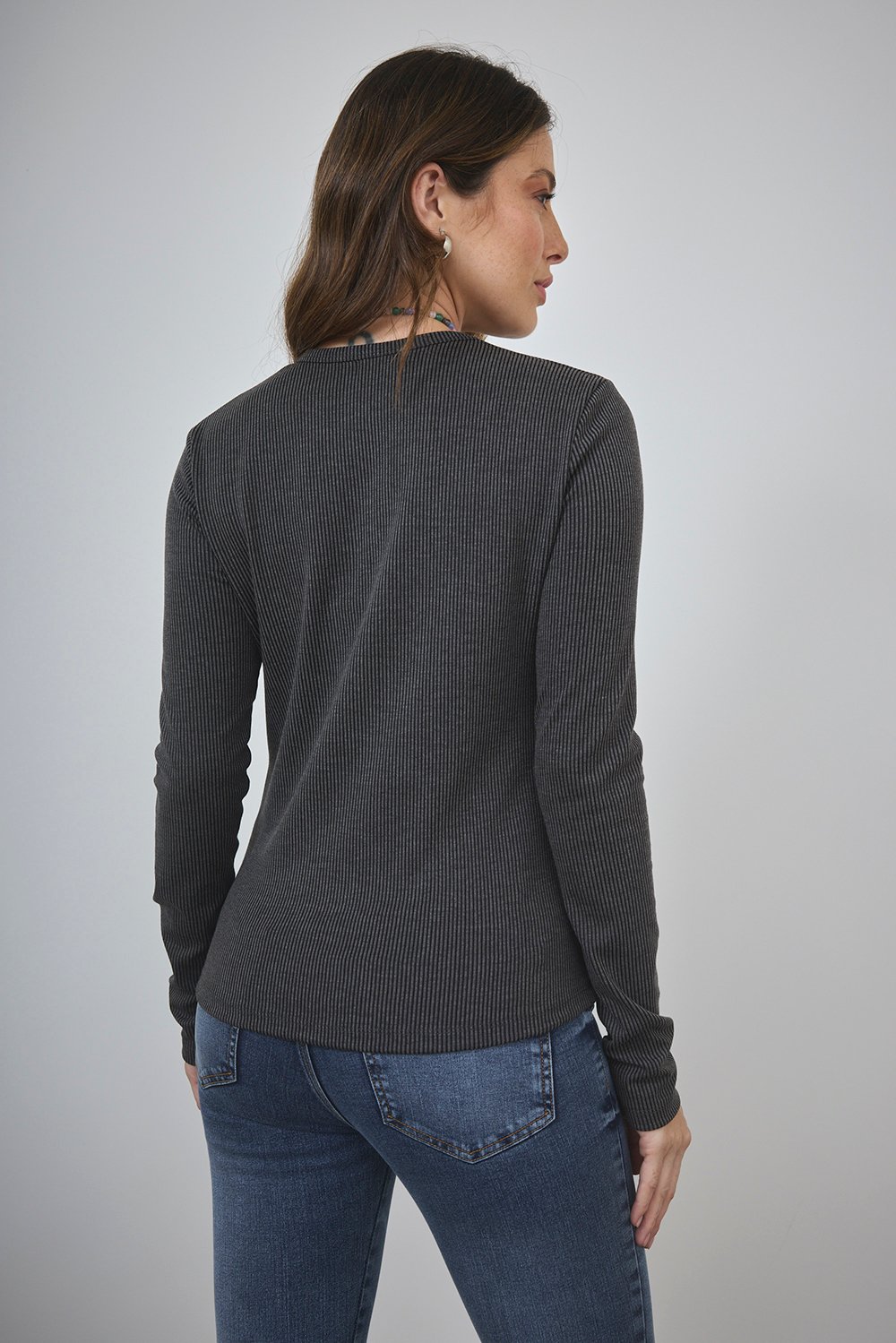ART. A-47 | REMERA GRIS CUELLO EN V CON BRILLO
