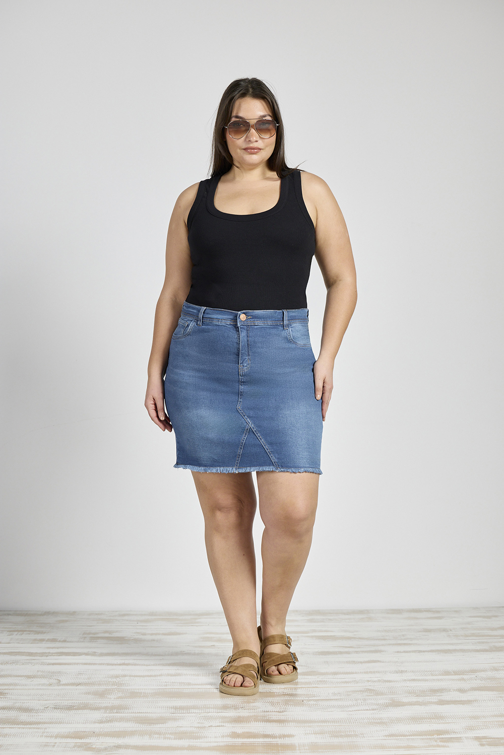 ART. M-539 | POLLERA AZUL DEFLECADO ELASTIZADO