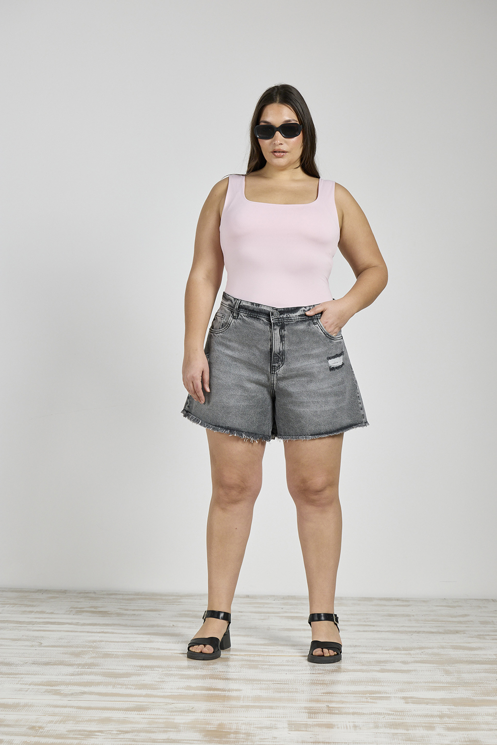 ART. M-542 | SHORT GRIS CON ROTURA DEFLECADO RÍGIDO