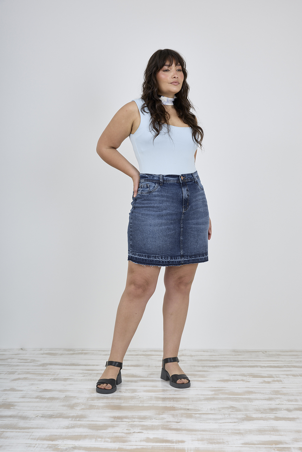ART. M-573 | POLLERA AZUL CON ROEDO DESCOCIDO ELASTIZADO