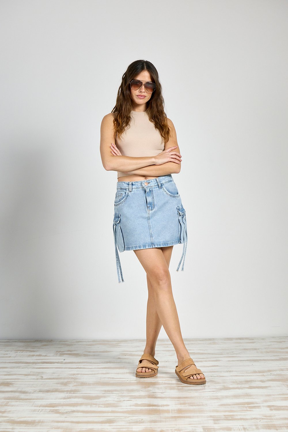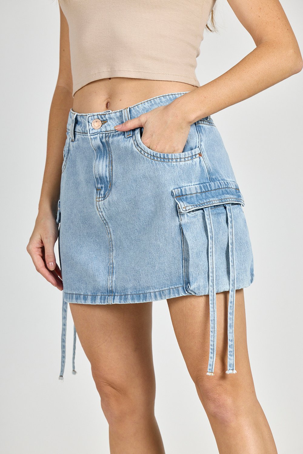 ART. P-34 | POLLERA CARGO STONE BOLSILLO VISTA ELASTIZADO